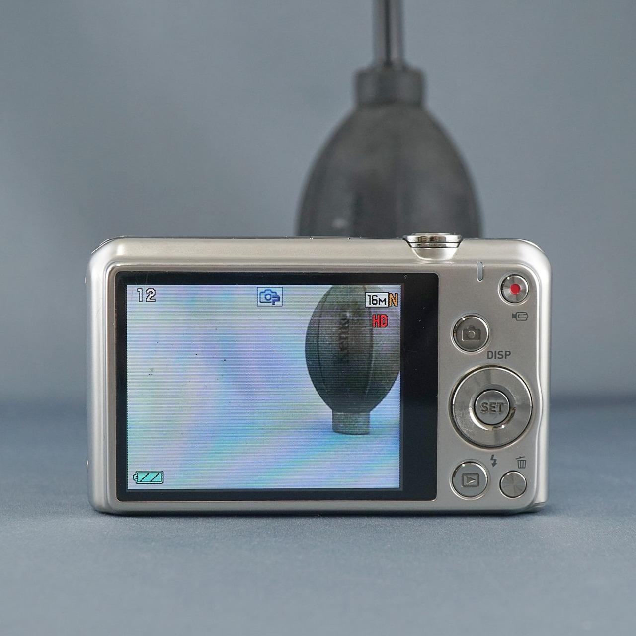 ※液晶に細かなスリキズ、小キズ、チリの混入、カビの発生(赤丸部分)があり、視認性に影響しています。(画像にてご確認ください。撮影画像への影響はありません。)