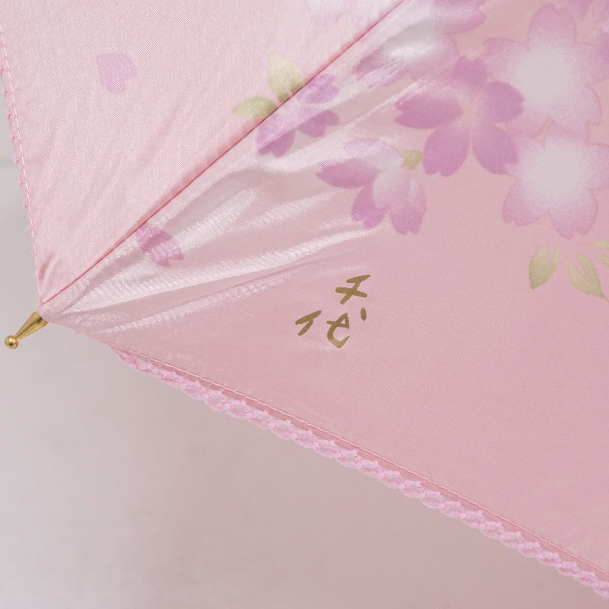 桜柄が美しいピンクの生地に、ワンポイントで「千代」のプリントが入り、和のテイストを感じられます。