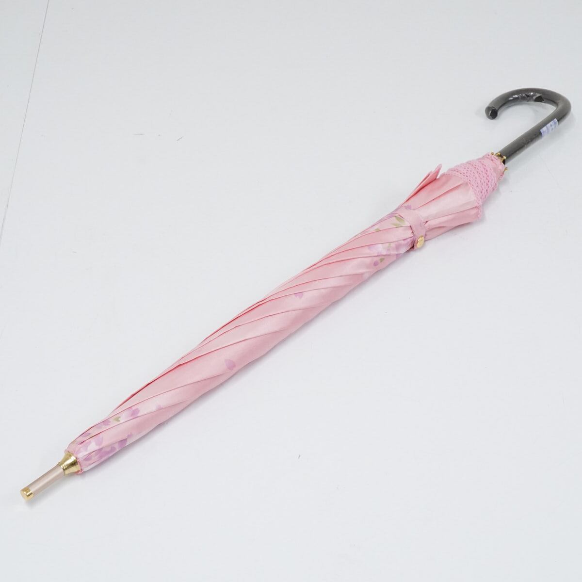 宇野千代 USED美品 晴雨兼用日傘 ピンク 桜 和風 レース 木製手元 ロゴ 刺繍 和装 着物 58cm A2432