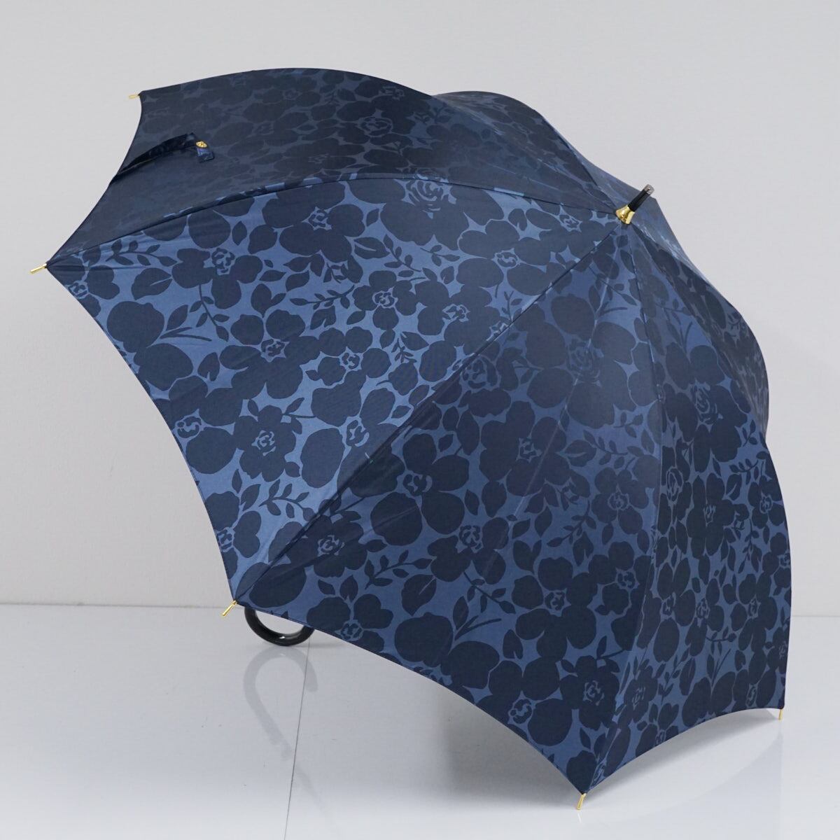 ネイビーの生地にフラワーシルエットをデザインしたシャルルジョルダンのアンブレラです。