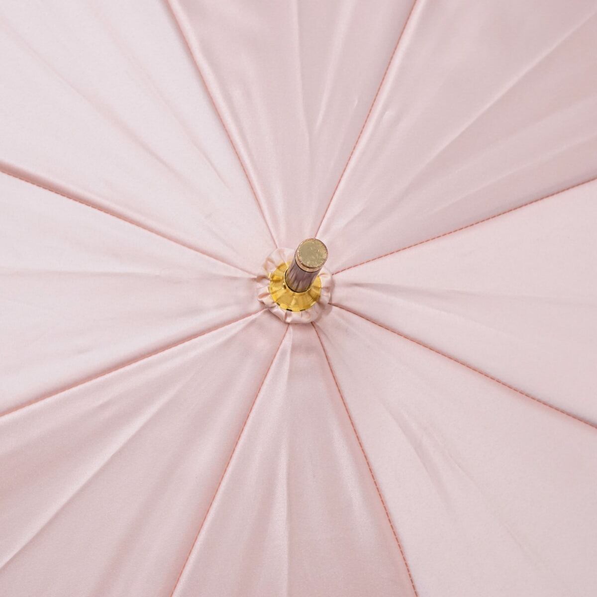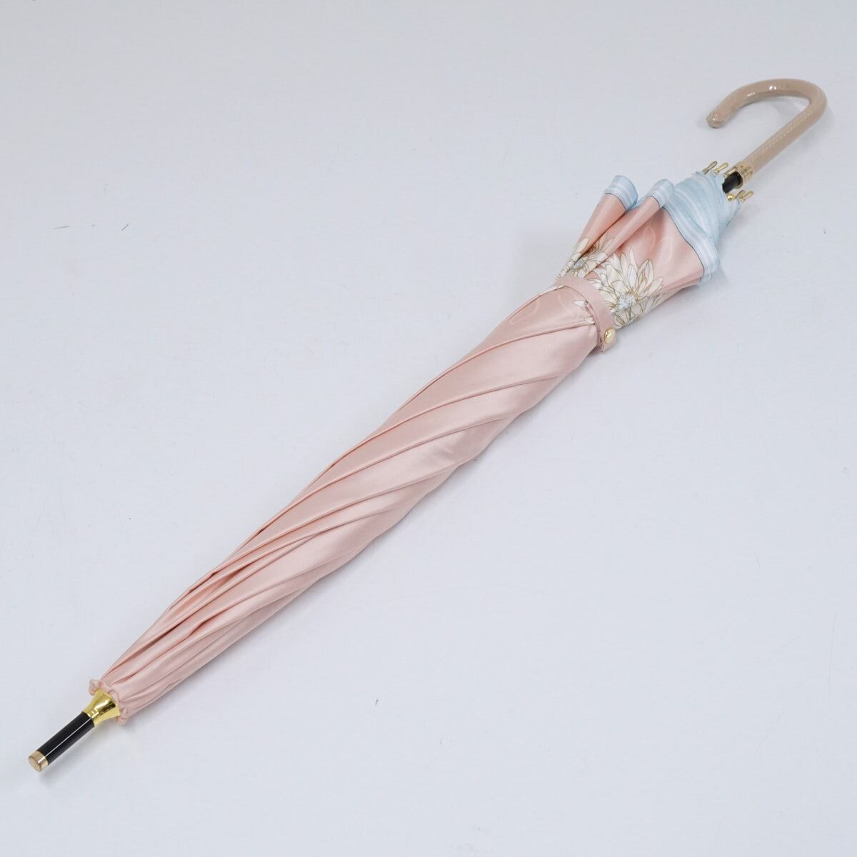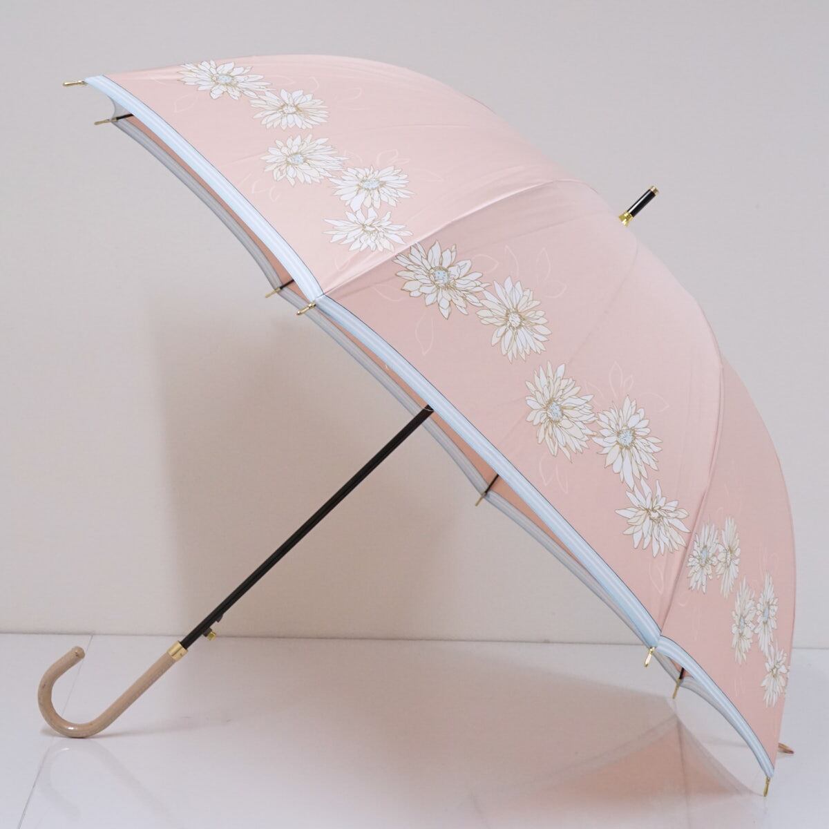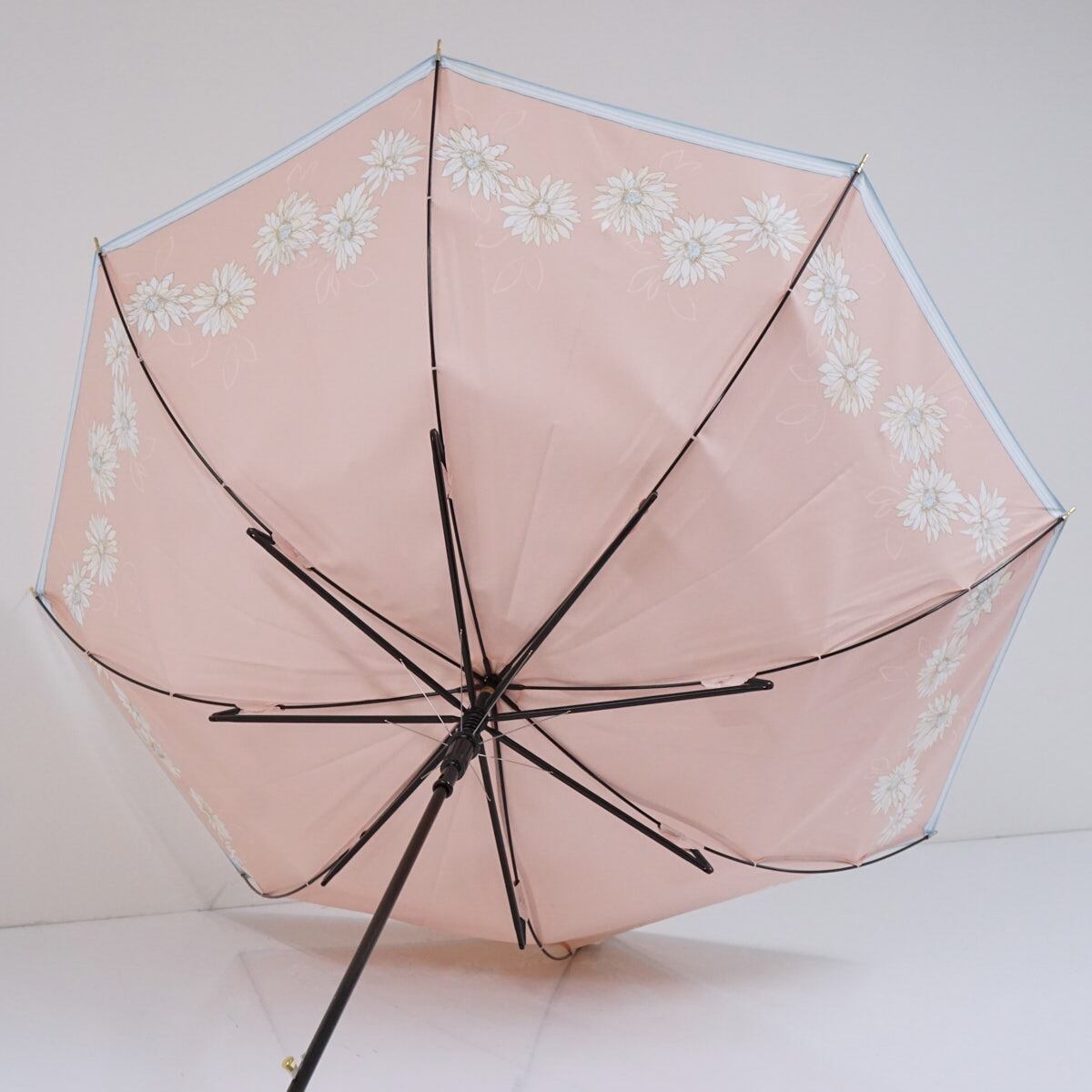 ライトピンクの生地をベースに、のフェミニンなフラワーを描いた「ランバンオンブルー」のアンブレラです。