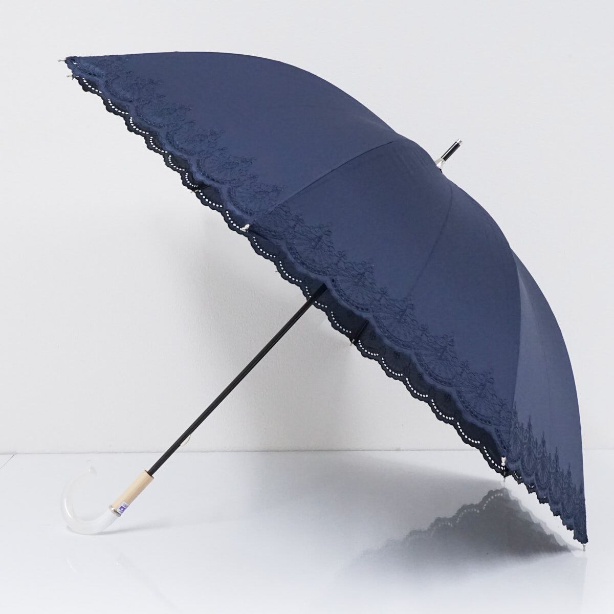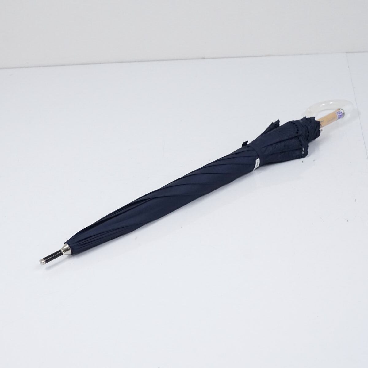 日傘 Longchamp ロンシャン 晴雨兼用 USED美品 レース 刺繍 スカラップフリル ネイビー UV 遮光 50cm A2440