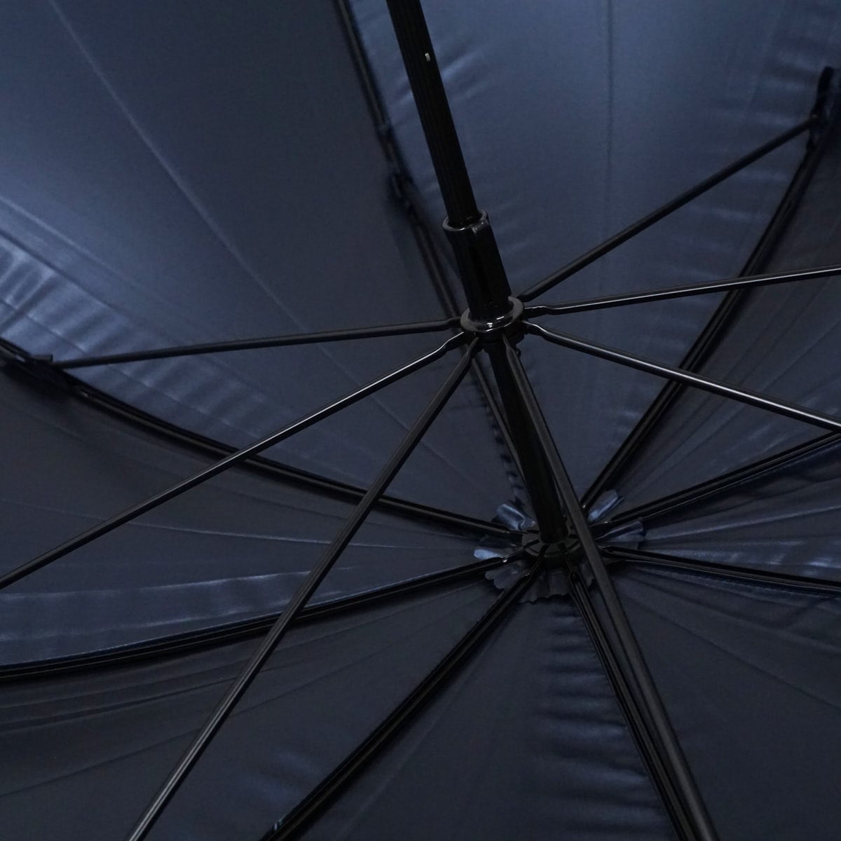 UV加工されたネイビーの生地にレースのようなオリエンタル柄の