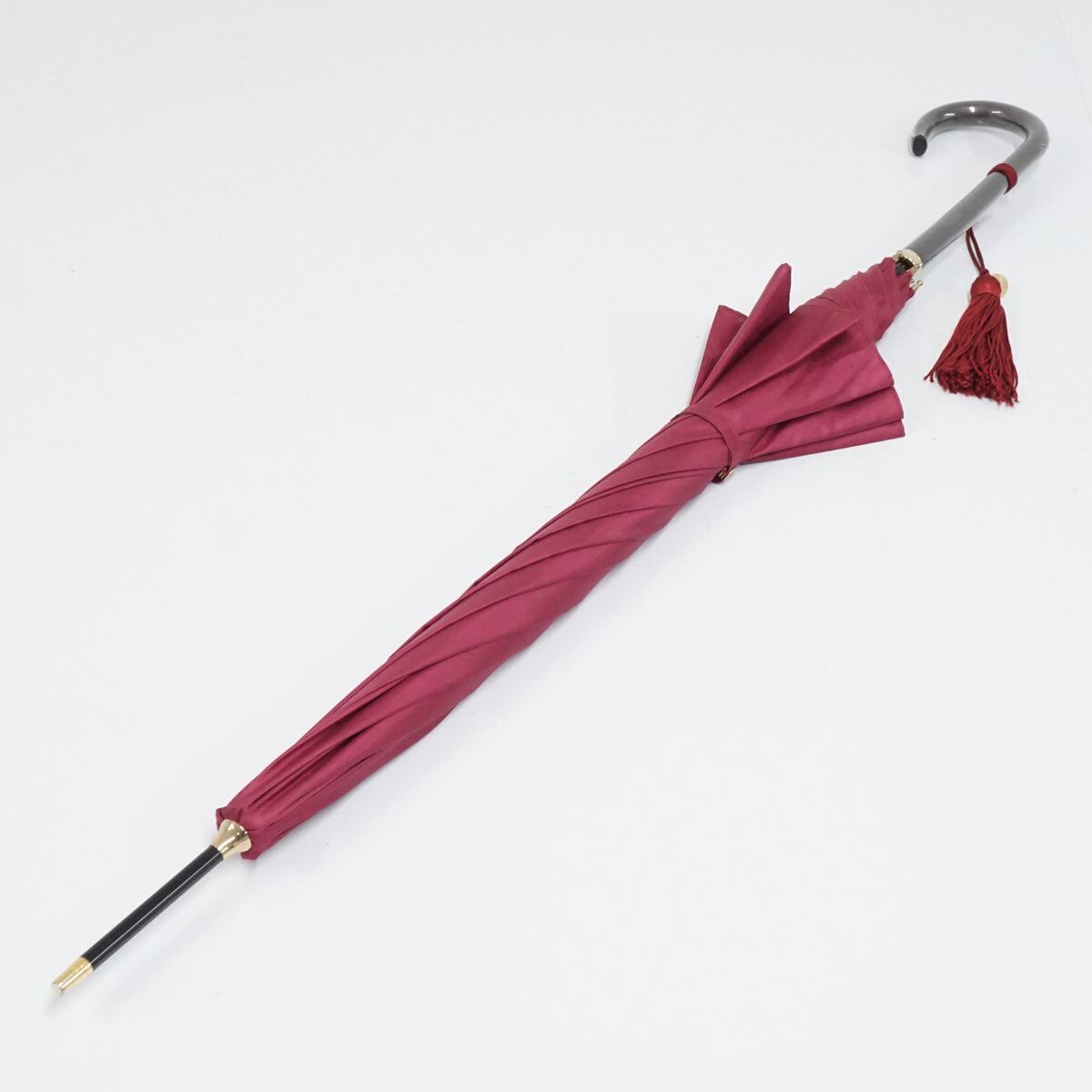 傘 前原光榮商店 高級 USED美品 TRAD-8 トラッド8 シンプル ワイン パープル 無地 日本製 タッセル付き 55cm S2448