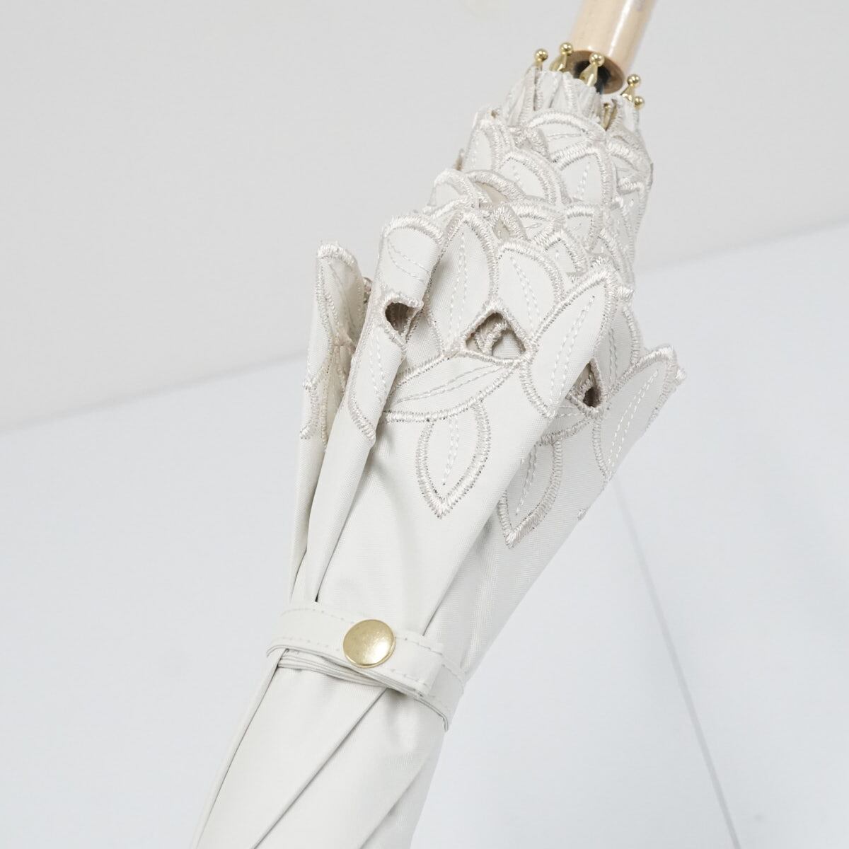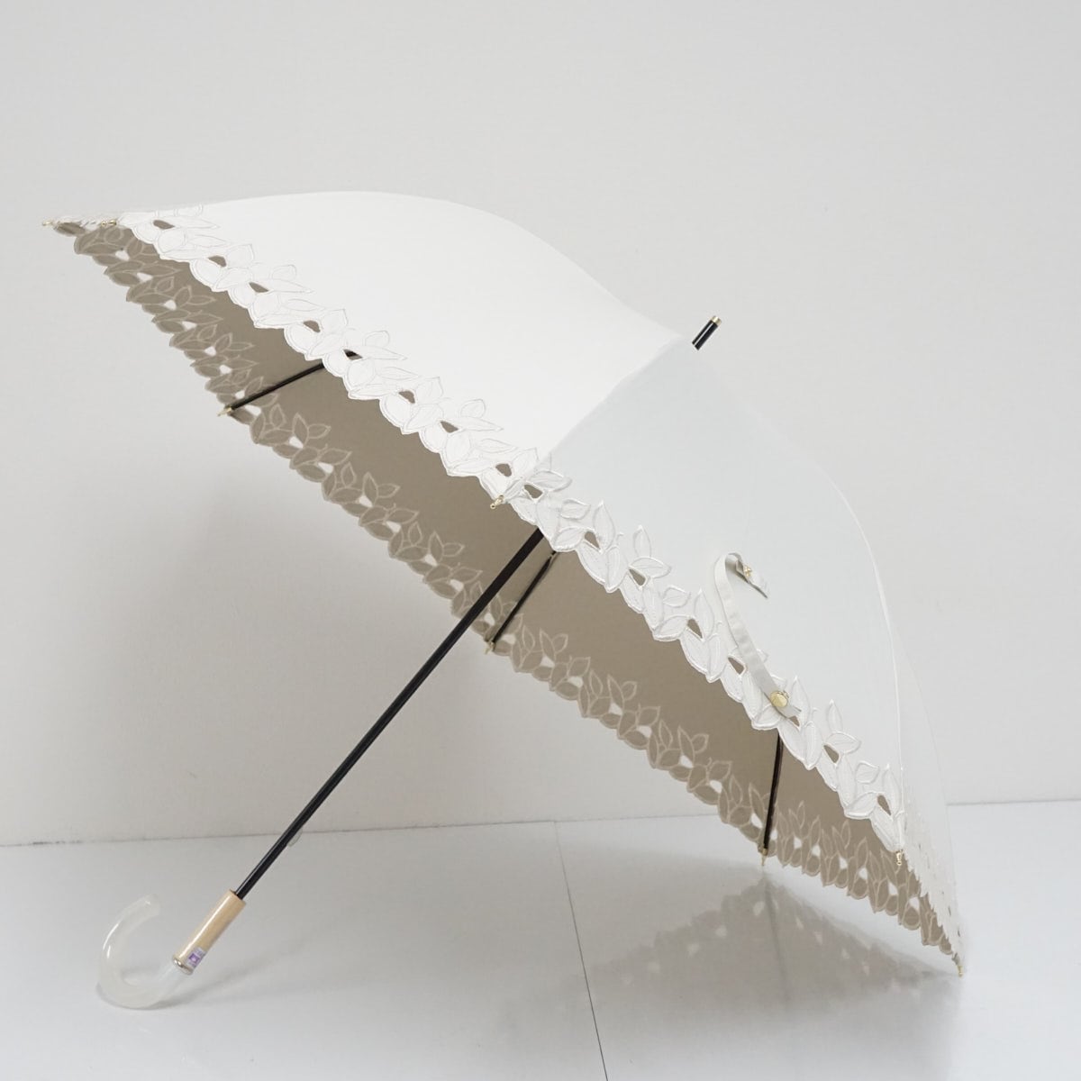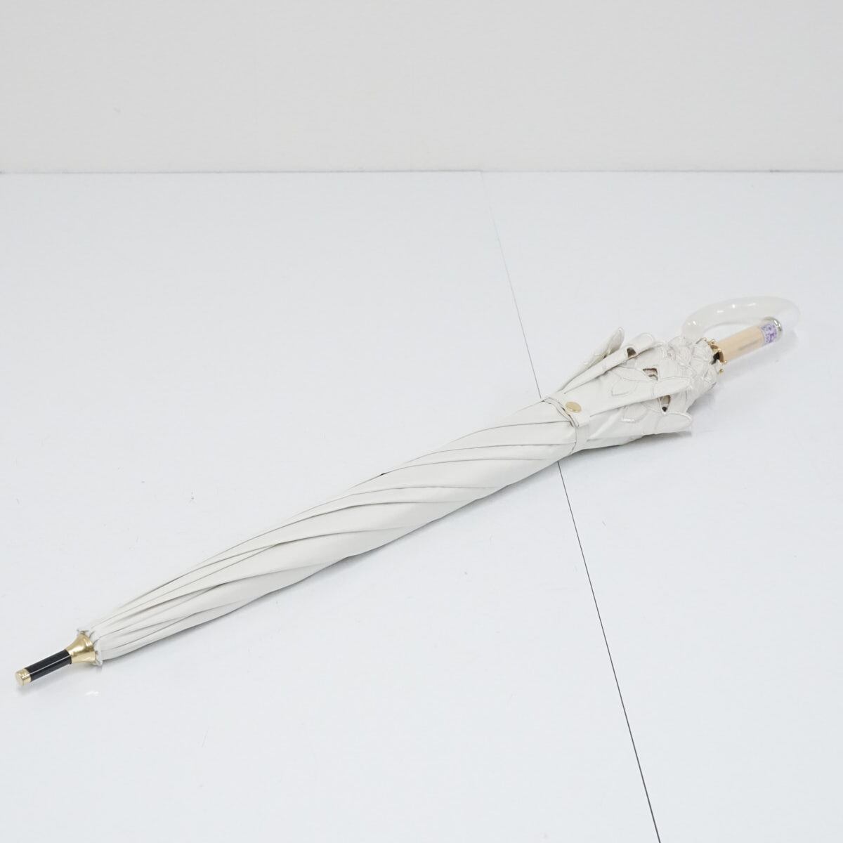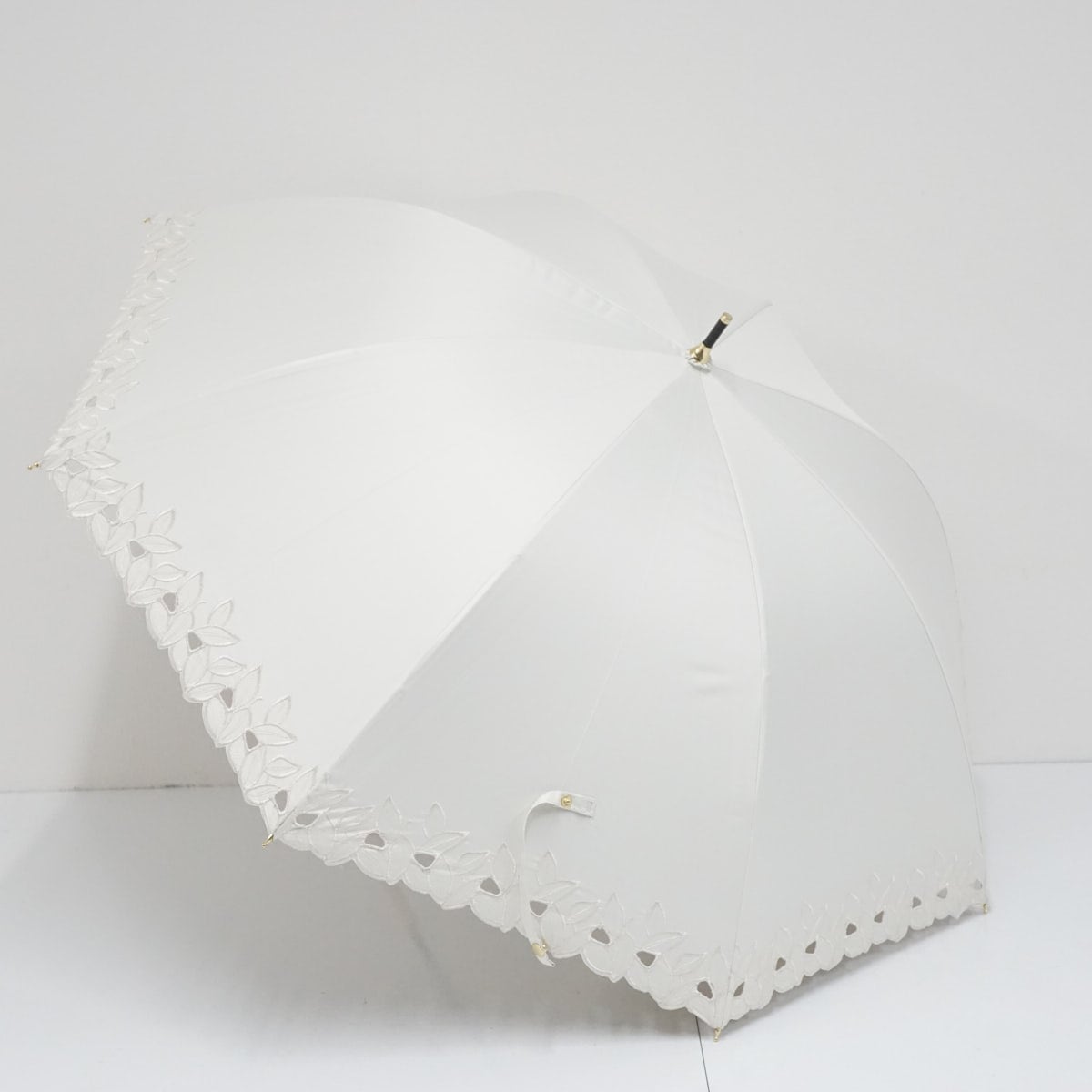 日傘 Longchamp ロンシャン 晴雨兼用 USED美品 刺繍 フラワーフリル ホワイト UV 遮光 50cm A2519