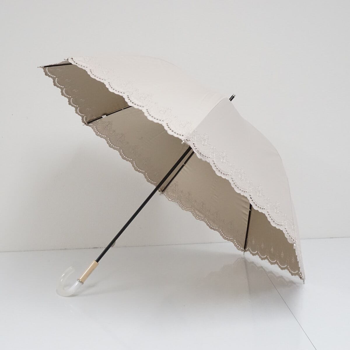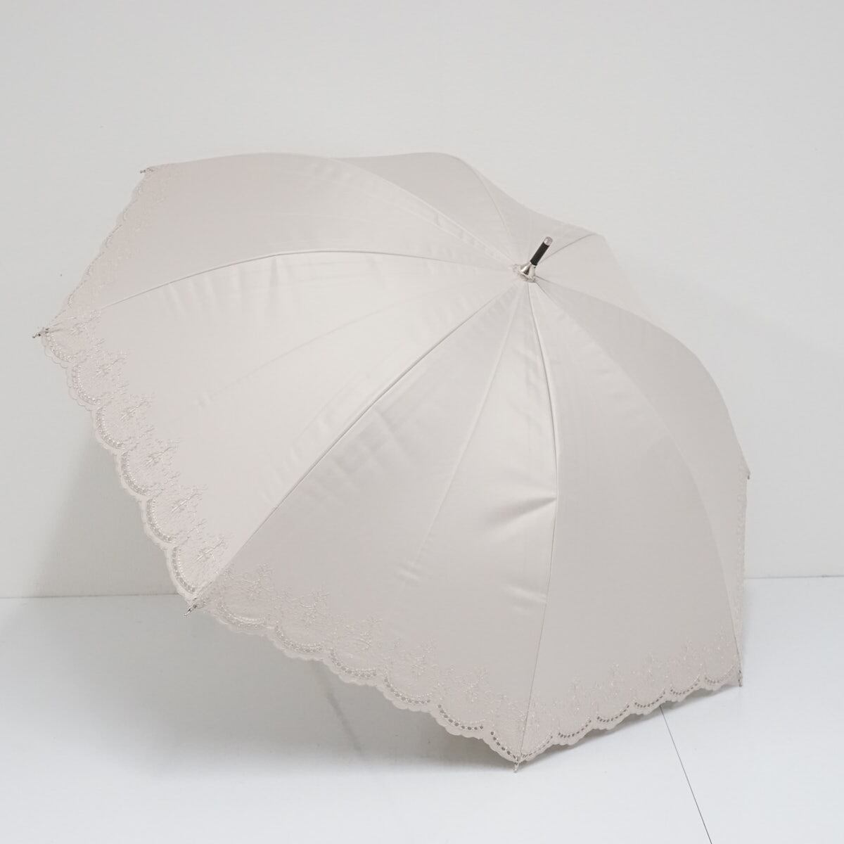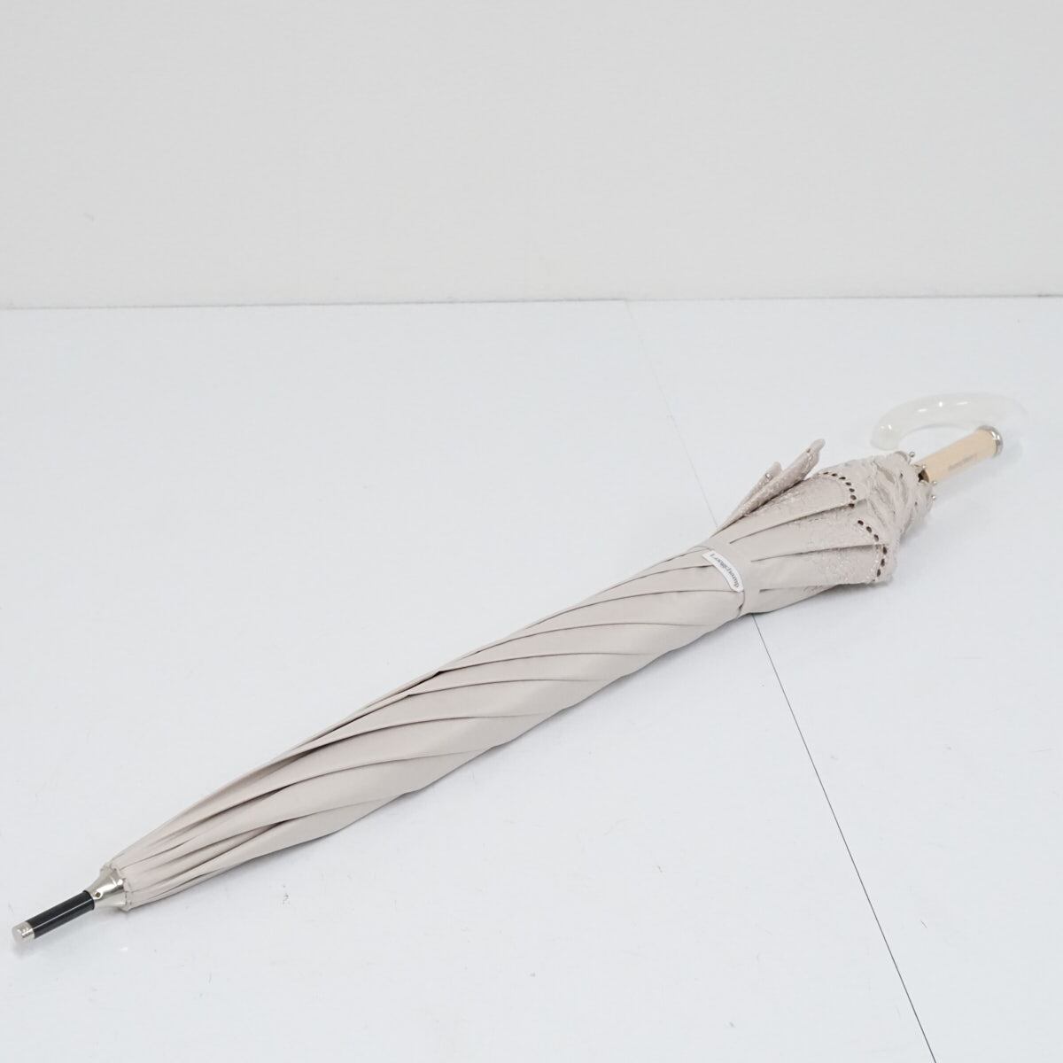 日傘 Longchamp ロンシャン 晴雨兼用 USED美品 レース スカラップフリル ベージュ UV 遮光 50cm A2457