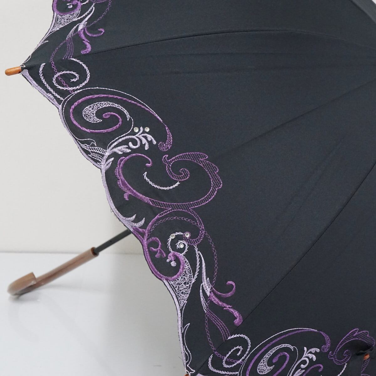 晴雨兼用日傘 chinoiserie modern シノワズリーモダン USED美品 プレシオサ ペイズリー刺繍 かわず張 女優日傘 遮光 遮熱 47cm S2463