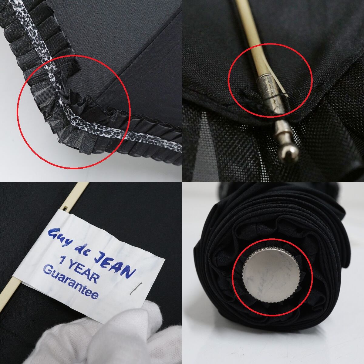 【新品未使用】高級折りたたみ傘 Guy de Jean ギィドゥジャン デッドストック品 レオパード フリル バラ ブラック 52cm FS8916
