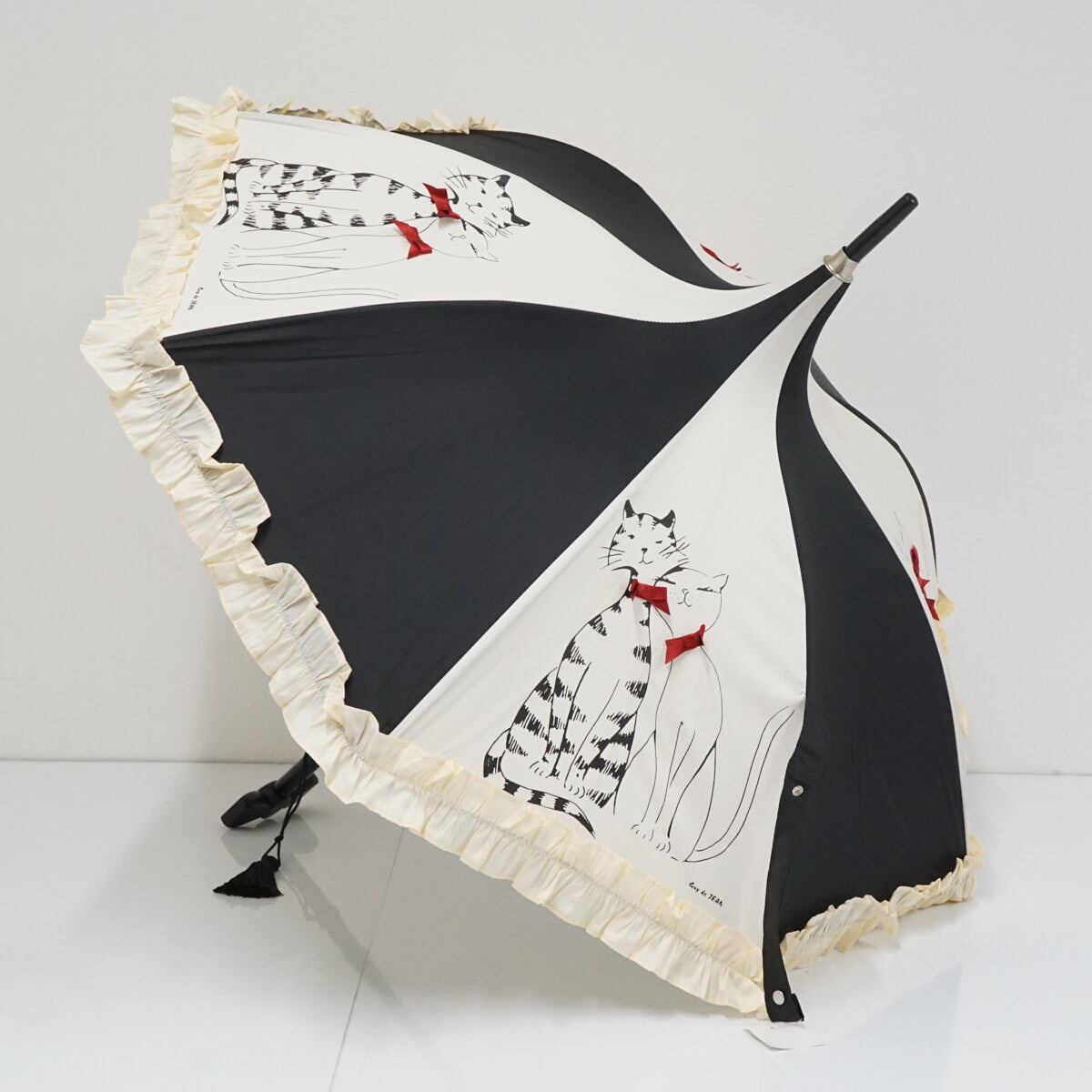 【新品未使用】高級傘 Guy de Jean ギィドゥジャン デッドストック品 パゴダ モノトーン ねこ タッセル付き 47cm S2466
