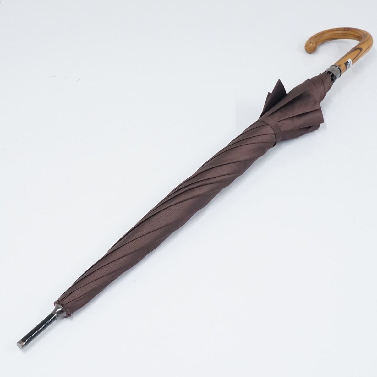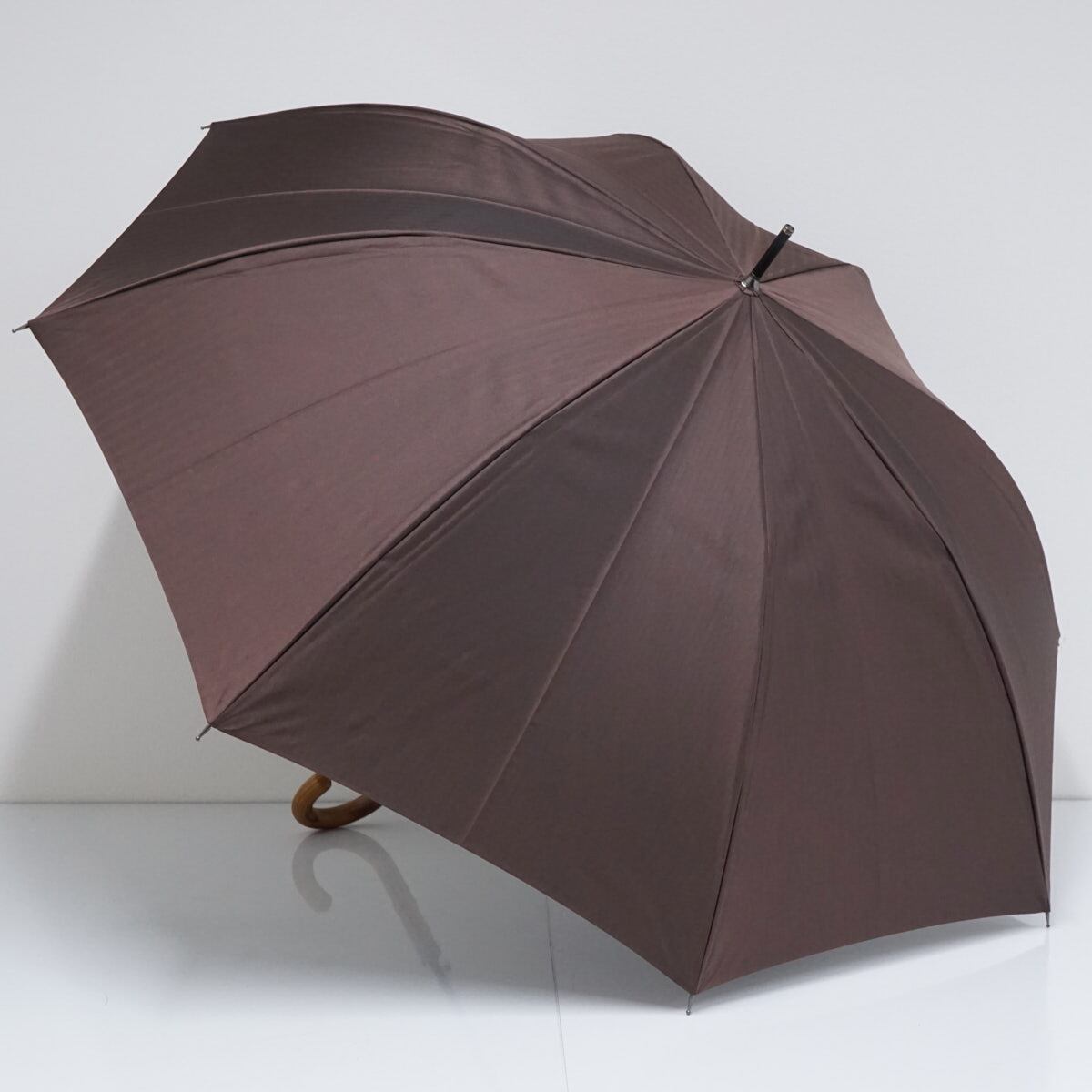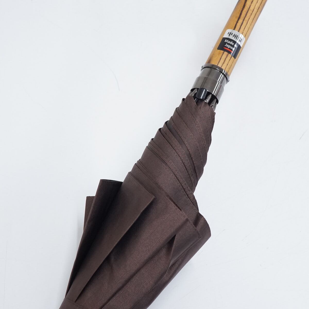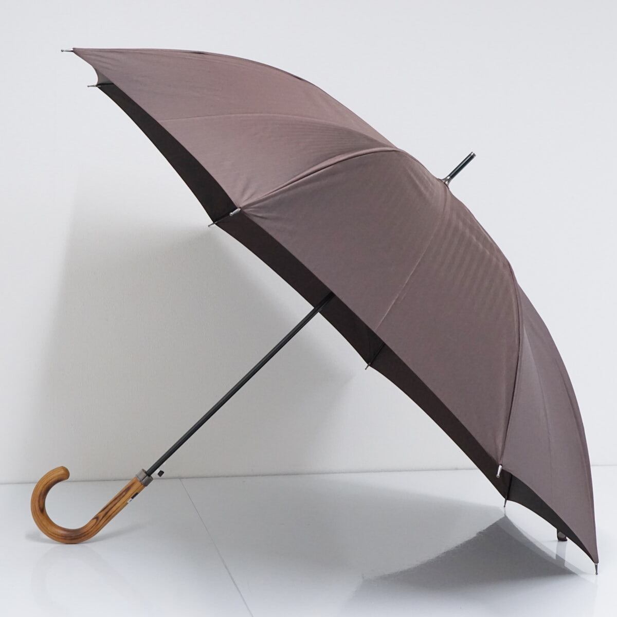傘 ASTY アスティ 槙田商店 日本製 高級紳士傘 USED超美品 木製手元 甲州織 ブラウン ストライプ 大判 65cm S2534