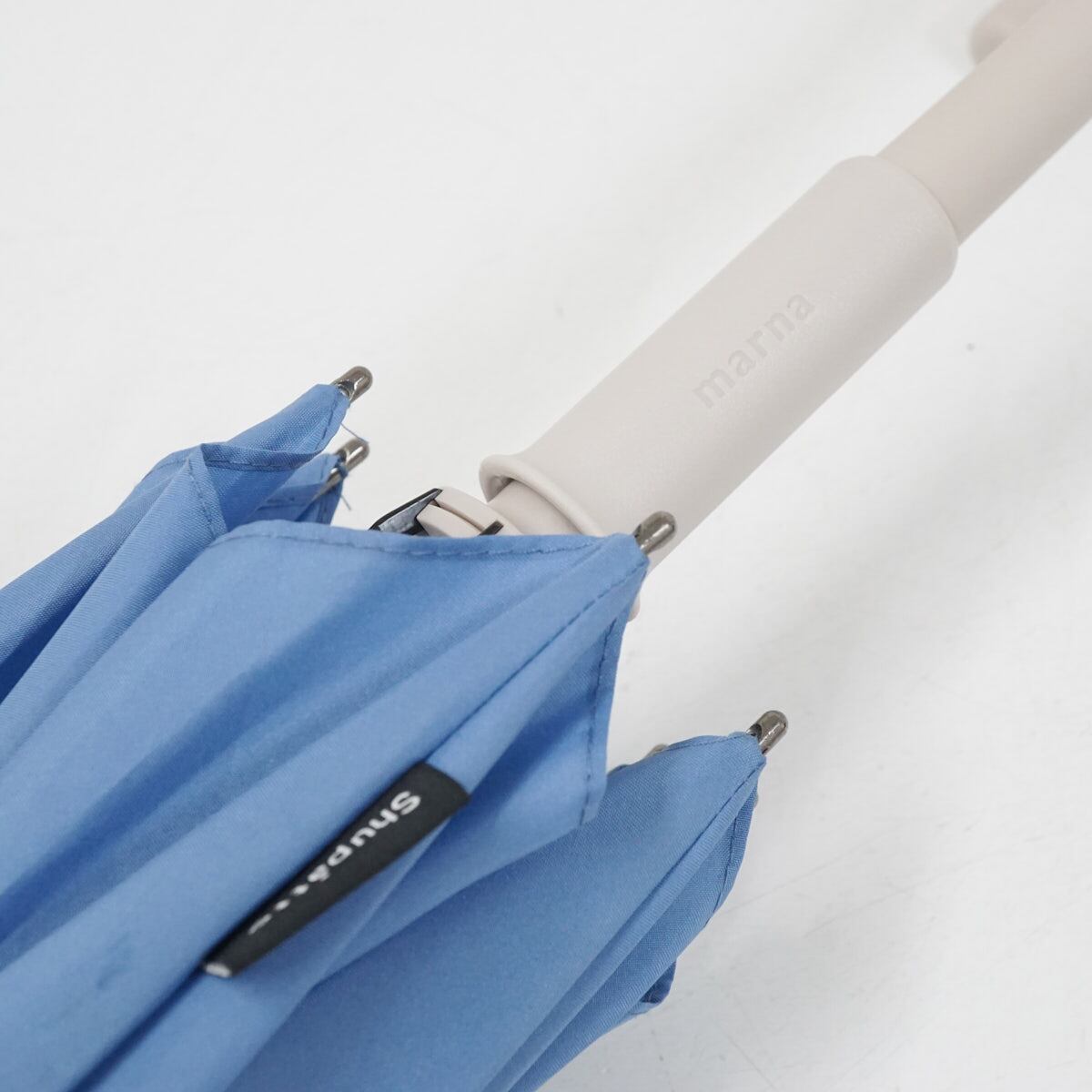傘 marna マーナ Shupatto シュパットアンブレラ USED美品 ベルトがない傘 手が濡れない 無地 アズールブルー 58cm S2846