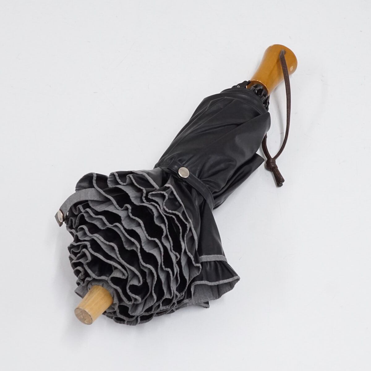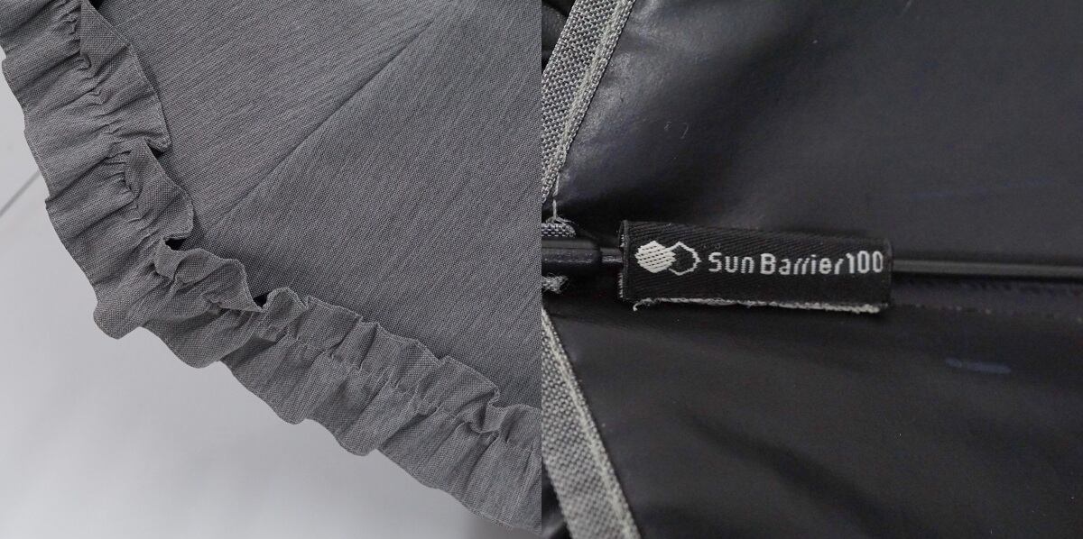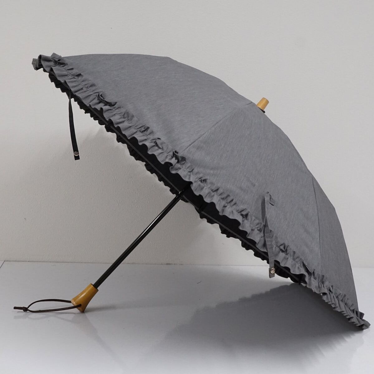 サンバリア100 完全遮光折日傘 USED美品 2段 フリル フロストグレー 折りたたみ UVカット 遮熱 50cm FS9233