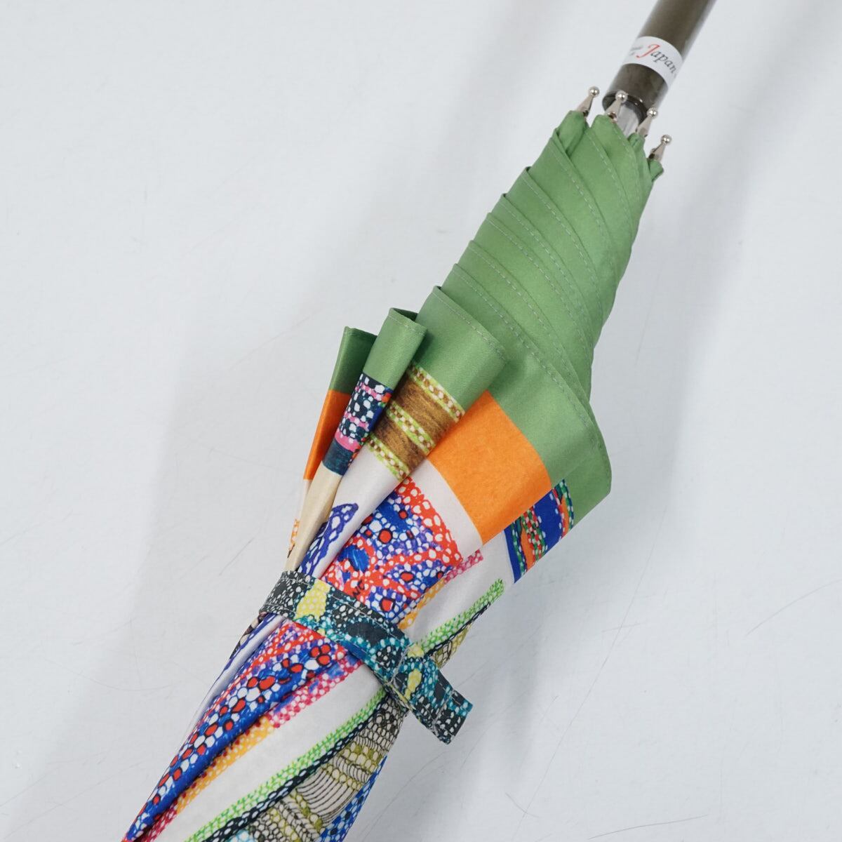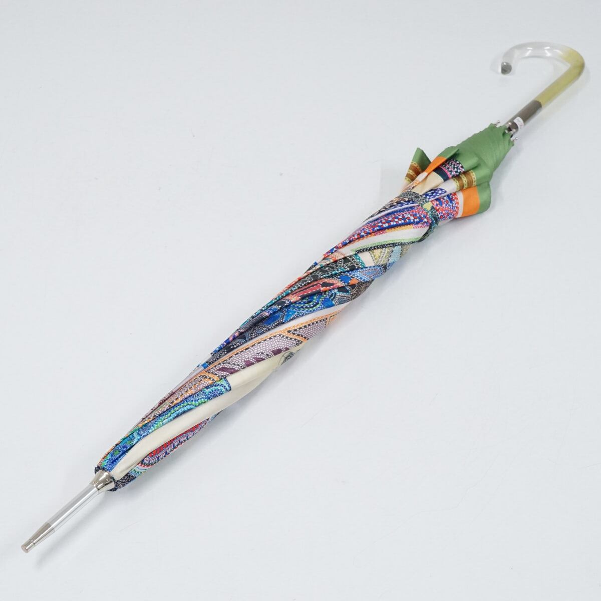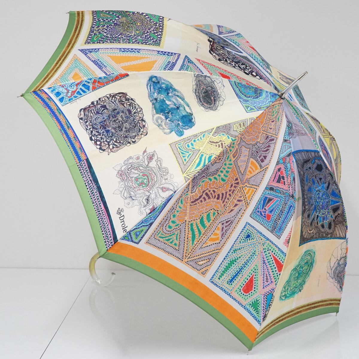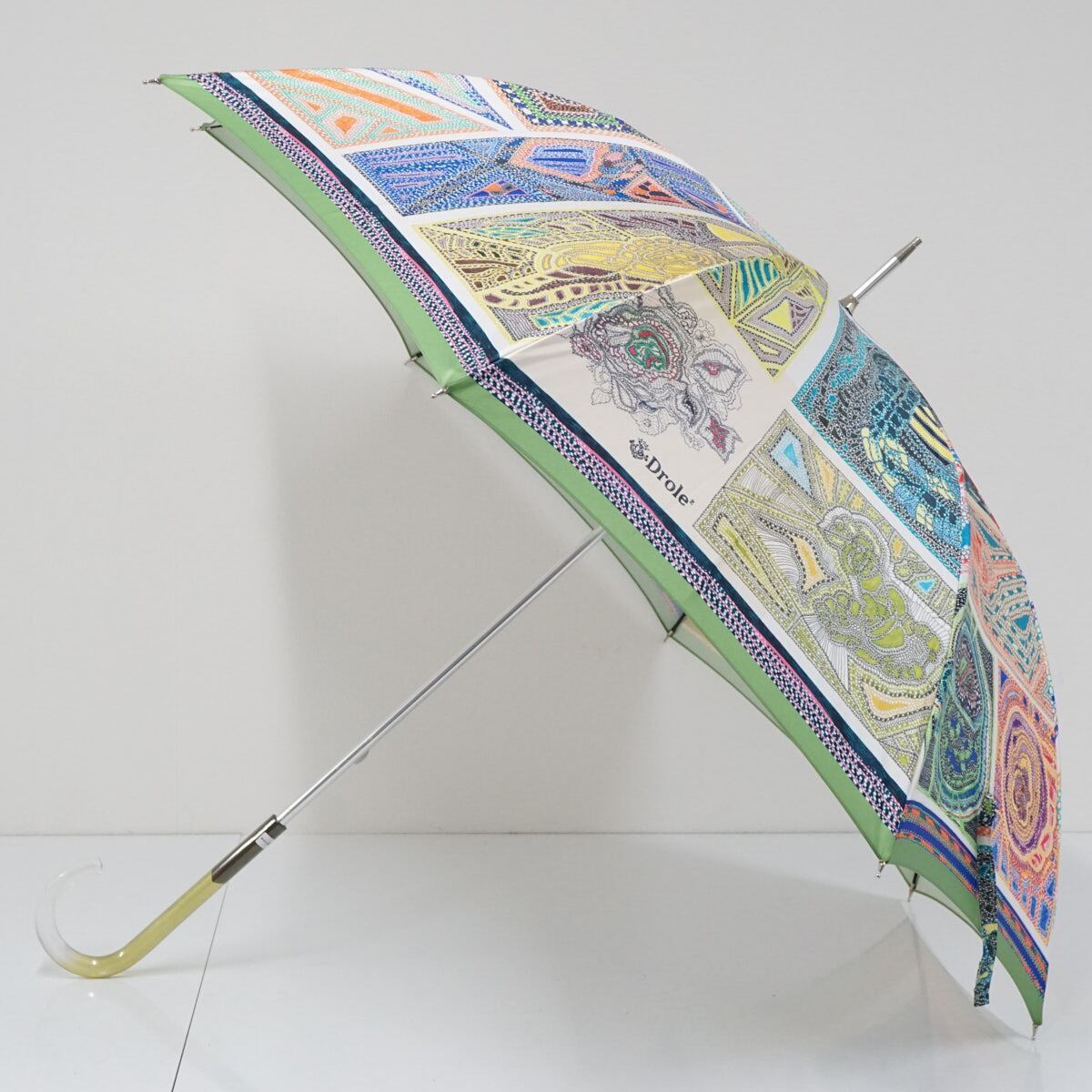 傘 Drole2 ドローレドローレ 高級傘 USED美品 テキスタイル 日本製 グリーン系 軽量 グラス骨 60cm A1294