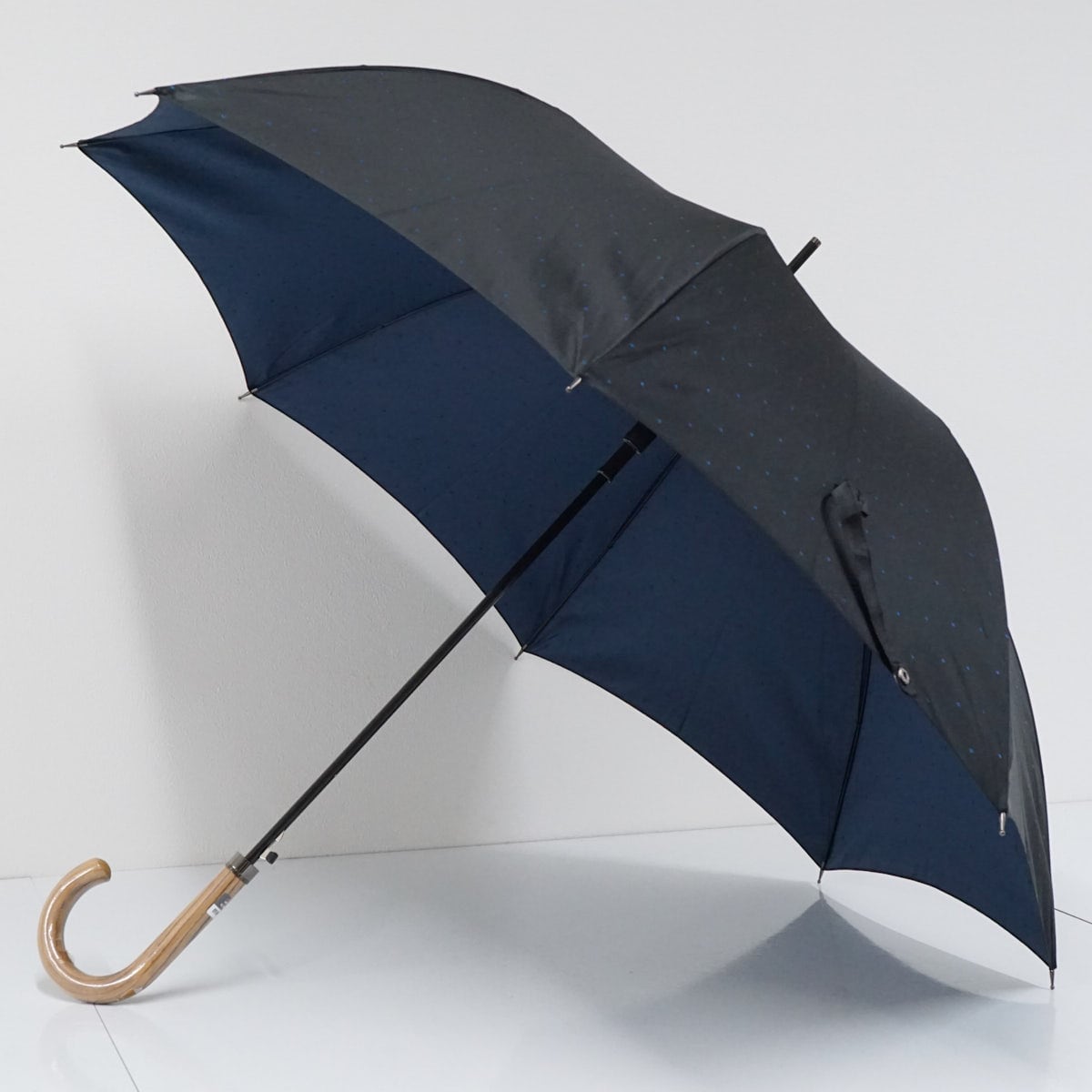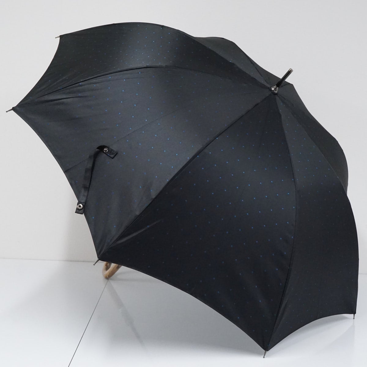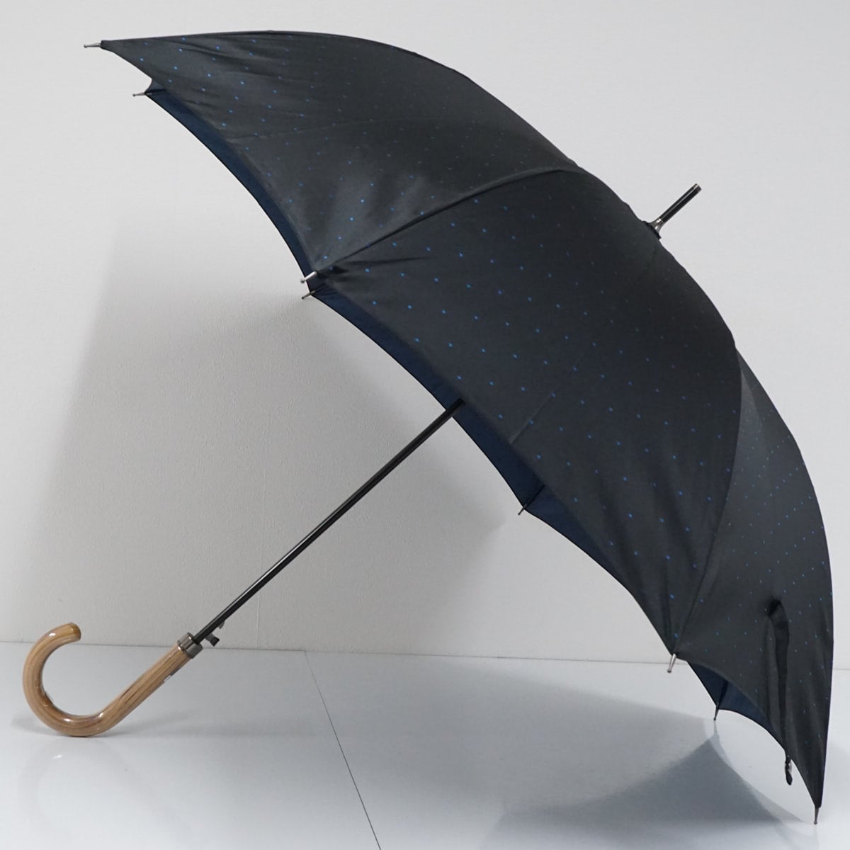 傘 ASTY アスティ 槙田商店 USED超美品 日本製 高級紳士傘 木製手元 甲州織 ブラック ブルー ドット 大判 65cm S2476