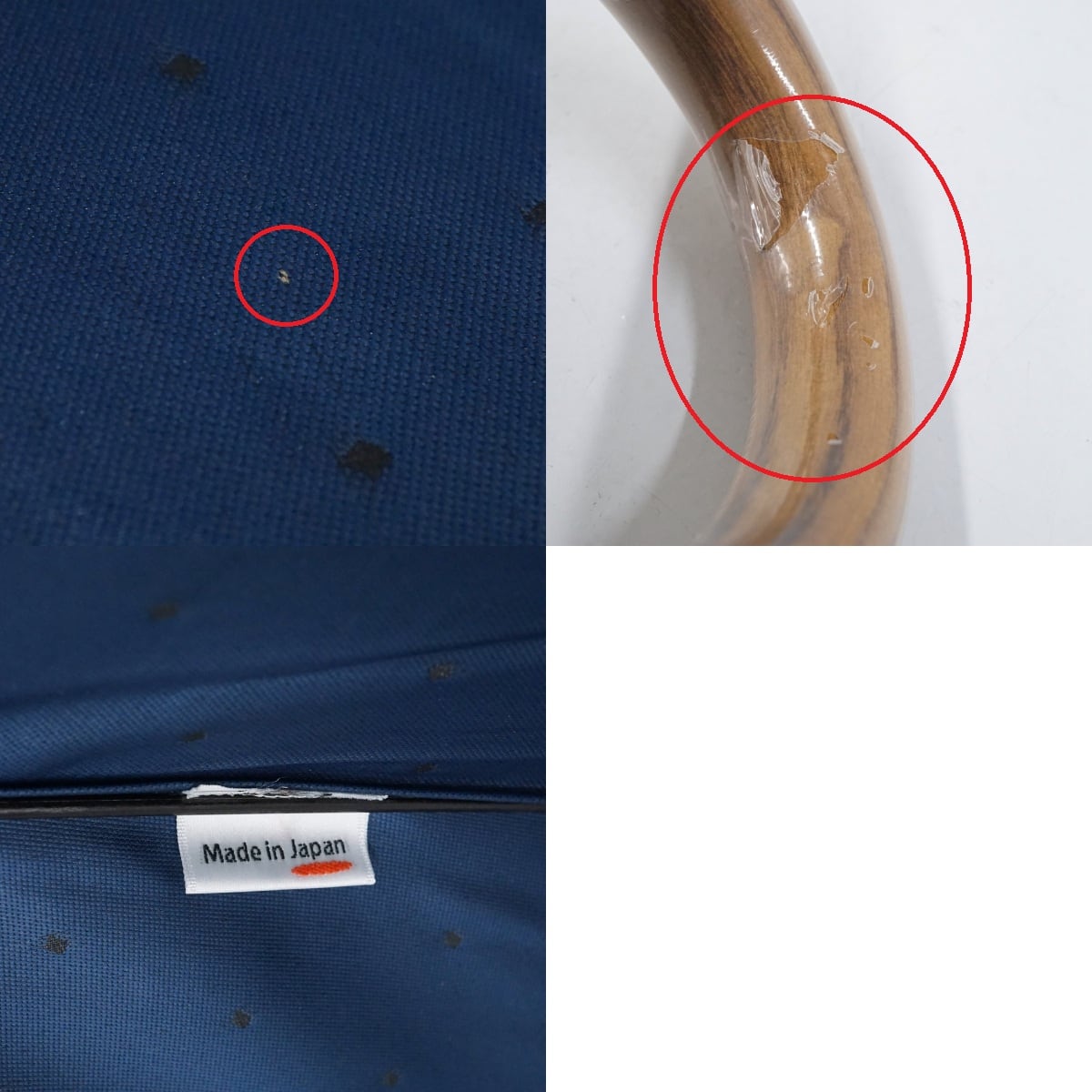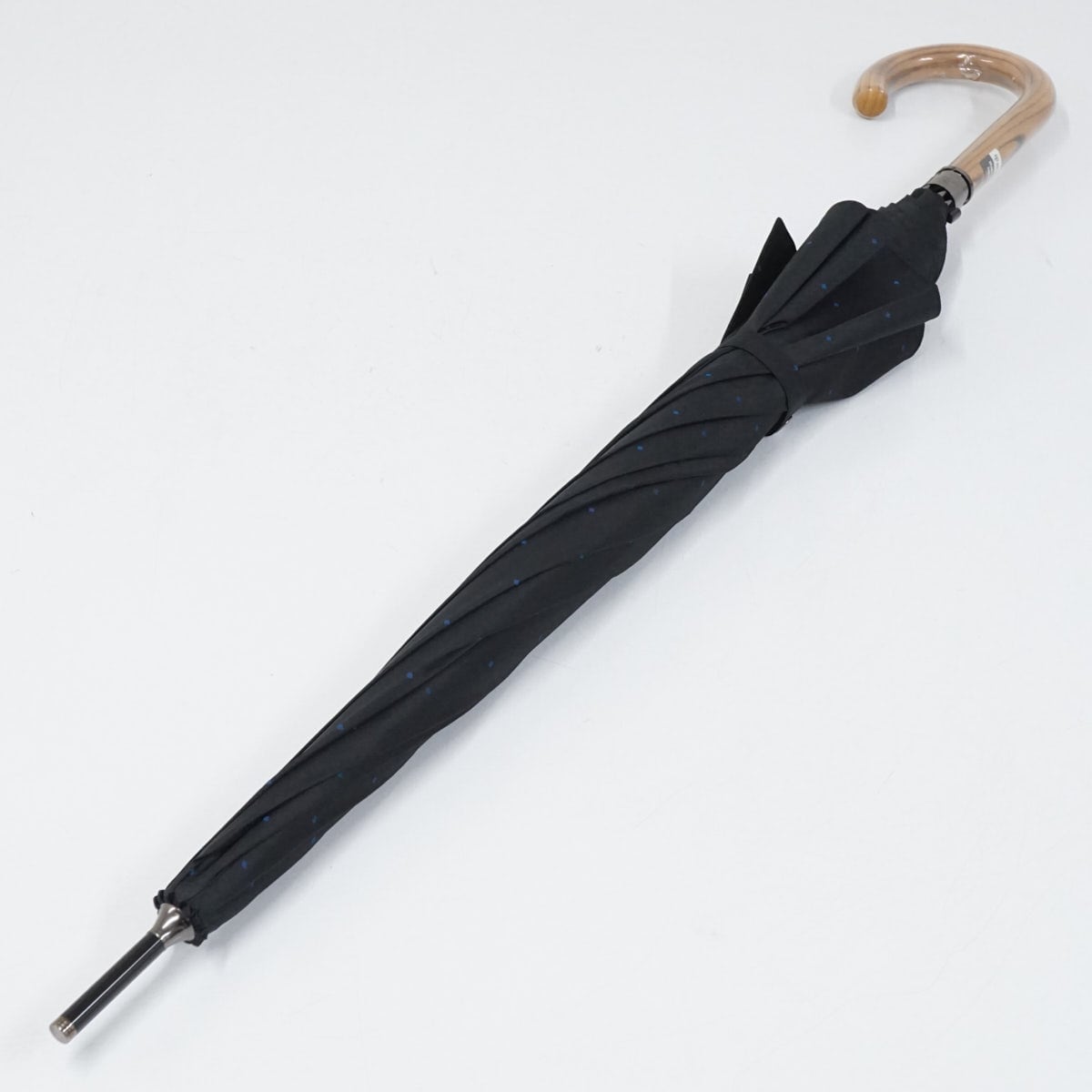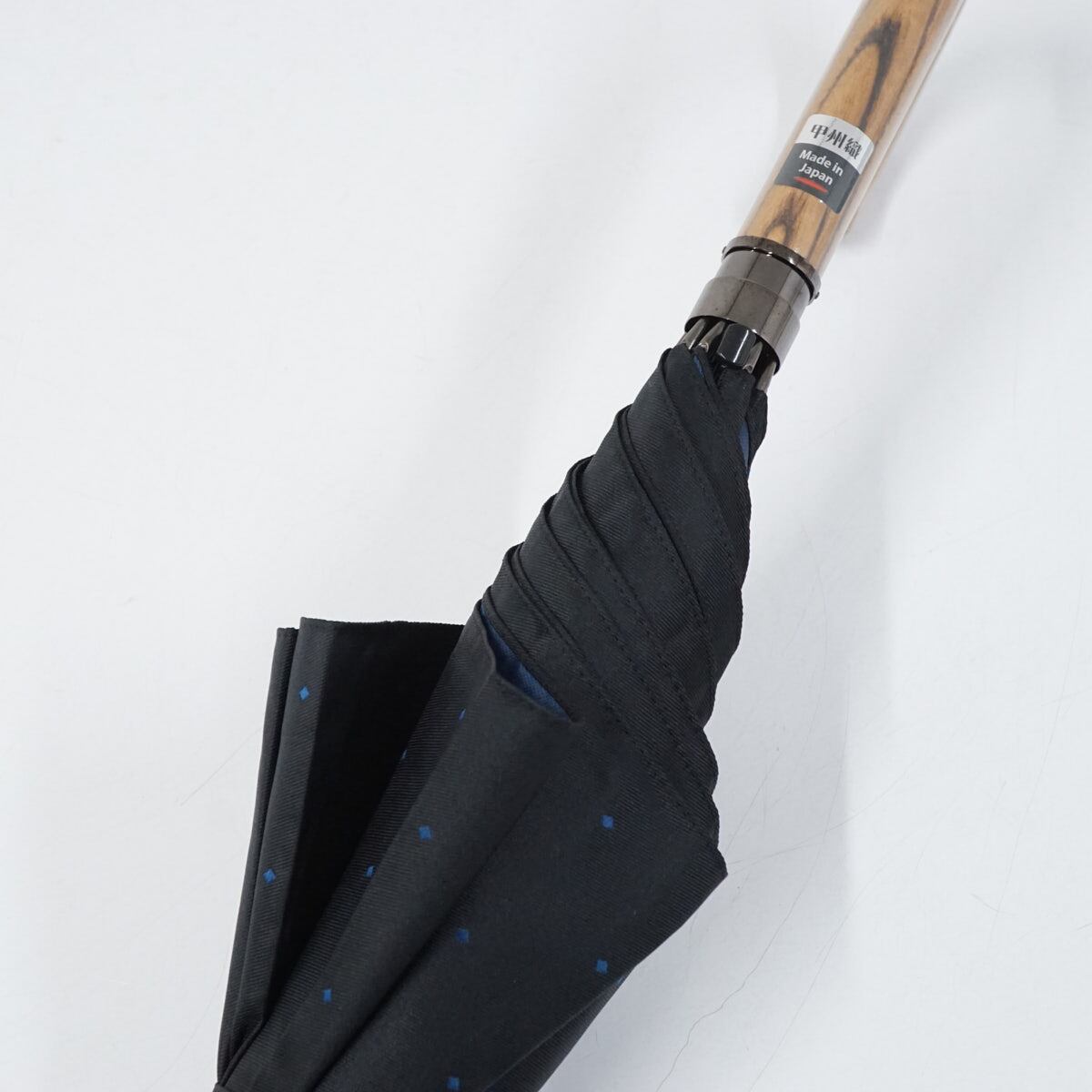 傘 ASTY アスティ 槙田商店 USED超美品 日本製 高級紳士傘 木製手元 甲州織 ブラック ブルー ドット 大判 65cm S2476