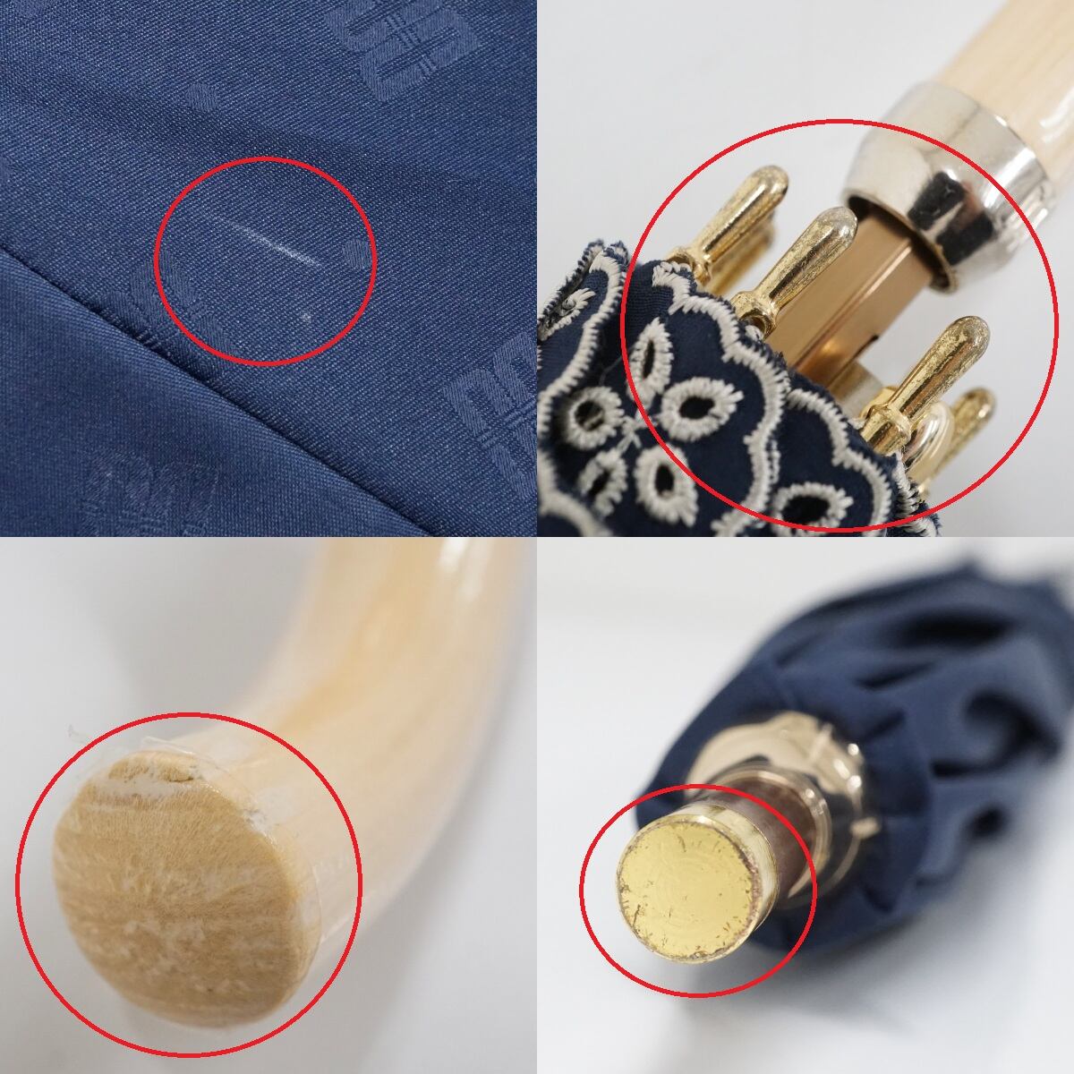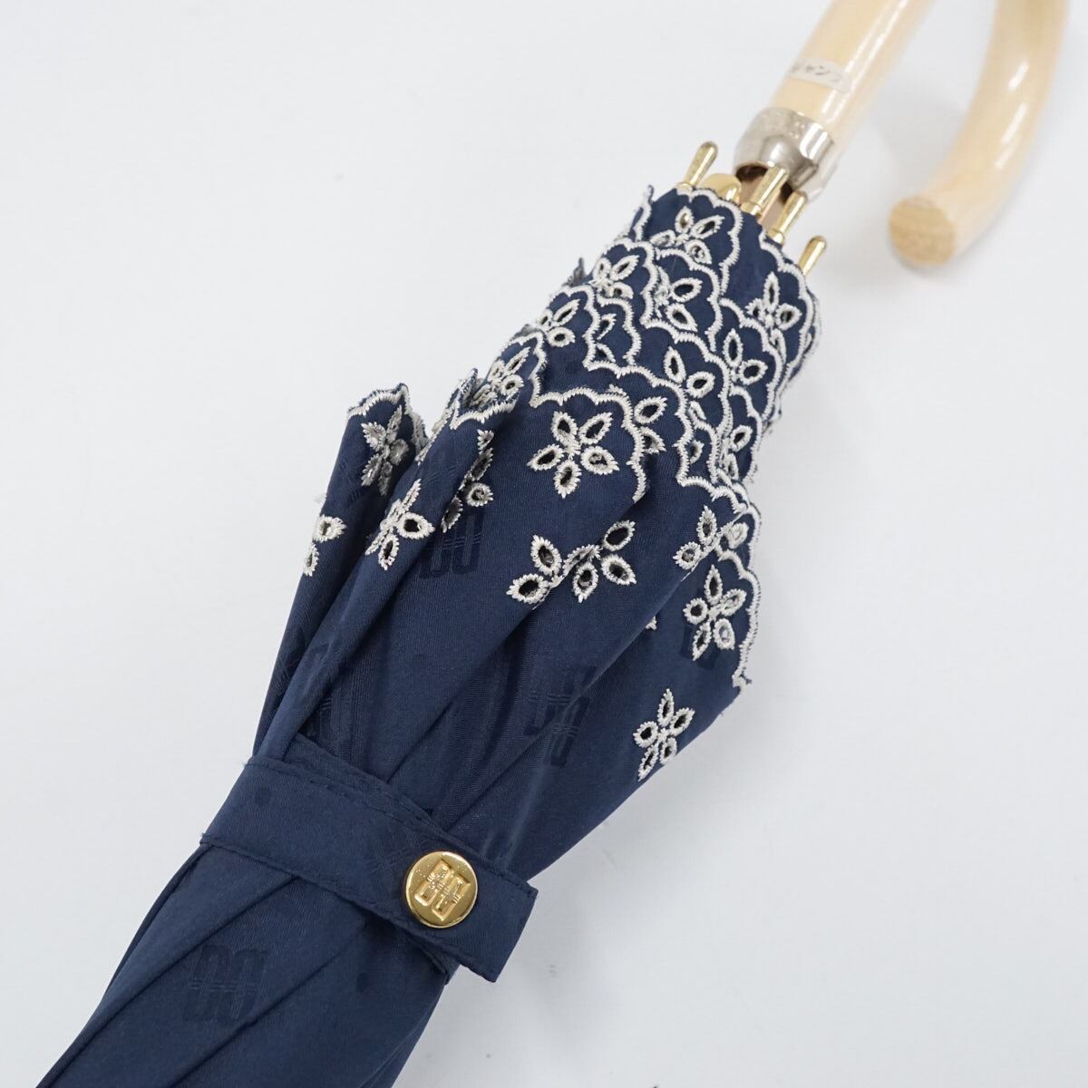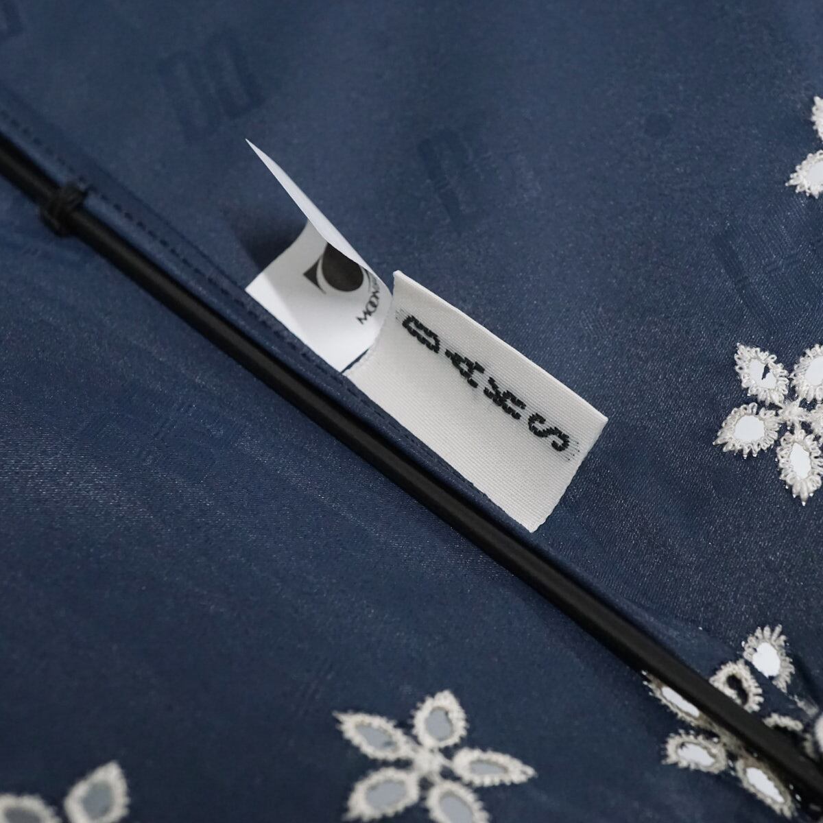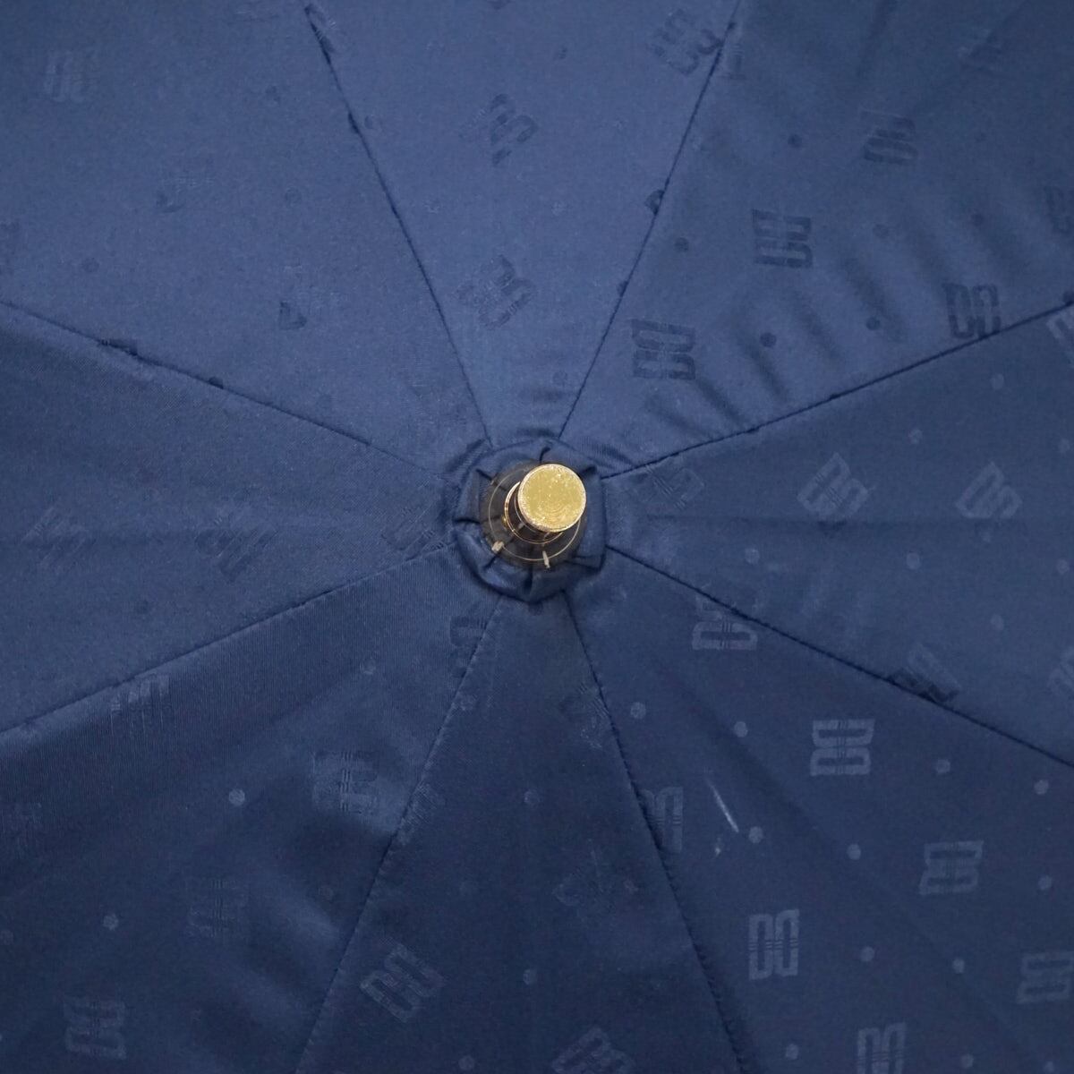 日傘 晴雨兼用 DAKS ダックス USED美品 ネイビー スカラップ フリル 刺繍 ロゴ ドット ジャンプ UV 遮光 47cm A2478