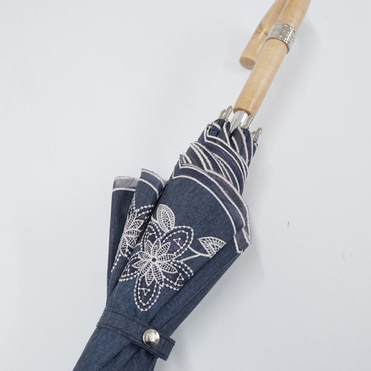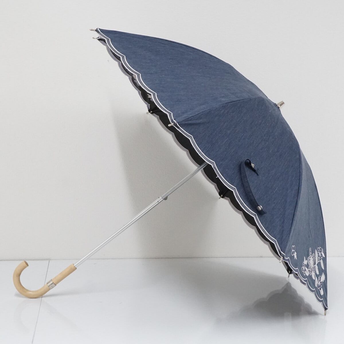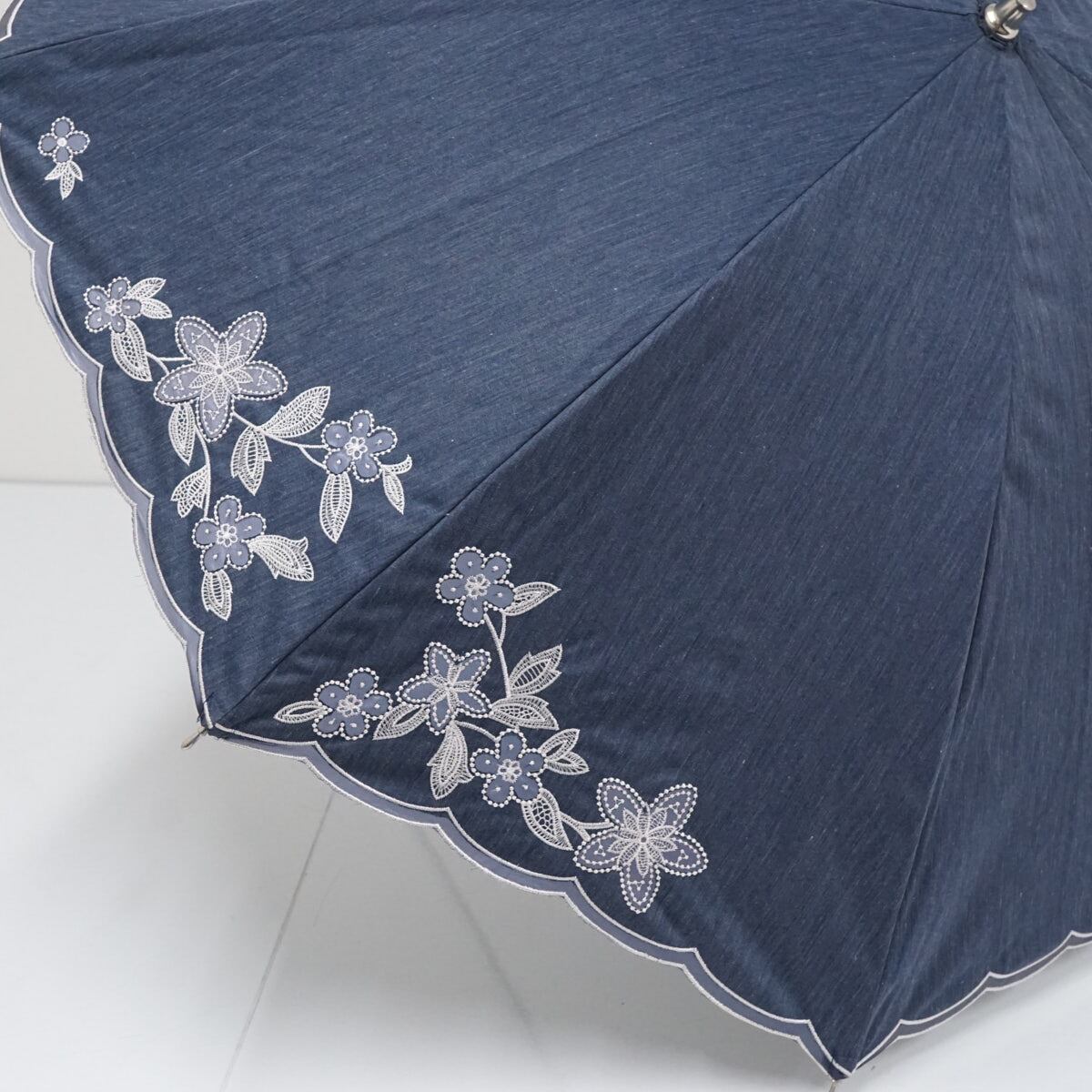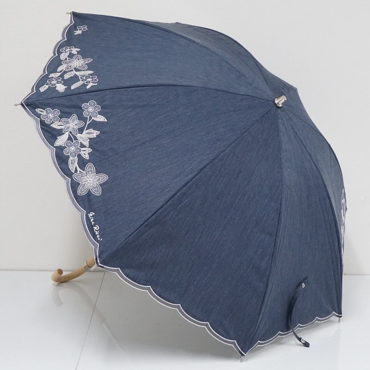 日傘 NINA RICCI ニナリッチ USED美品 晴雨兼用 刺繍 デニムブルー サマーシールドLi UV 遮光 遮熱 グラス骨 47cm S2480