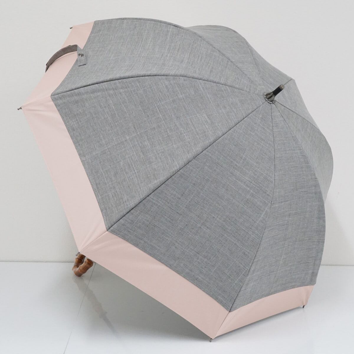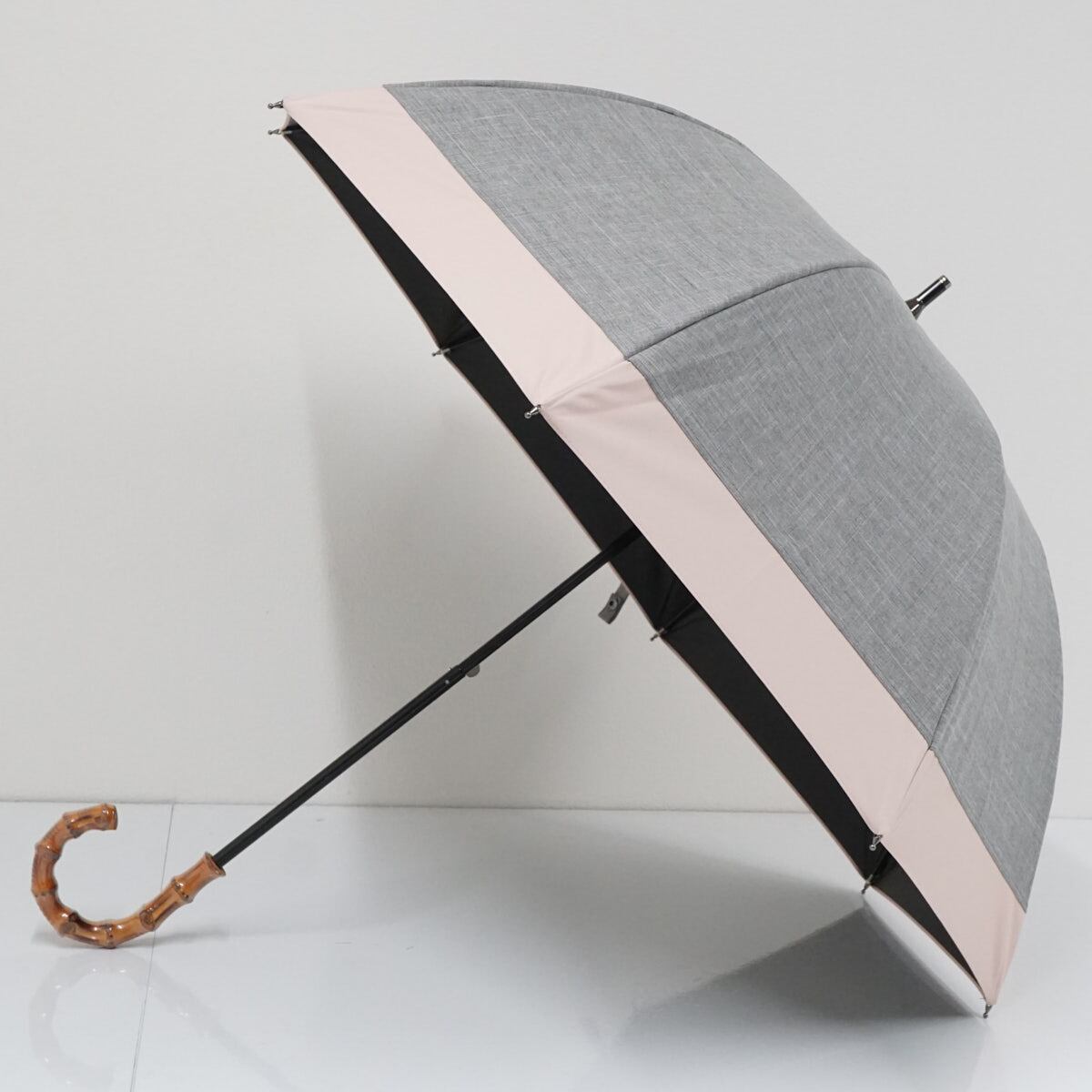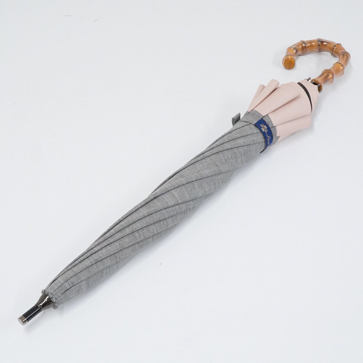 日傘 芦屋ロサブラン 完全遮光日傘 USED超美品 ショート コンビ ダンガリーグレー ピンク UV 遮光 遮熱 50cm S2483