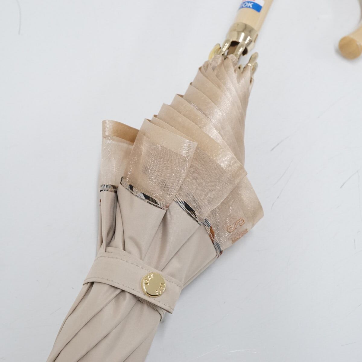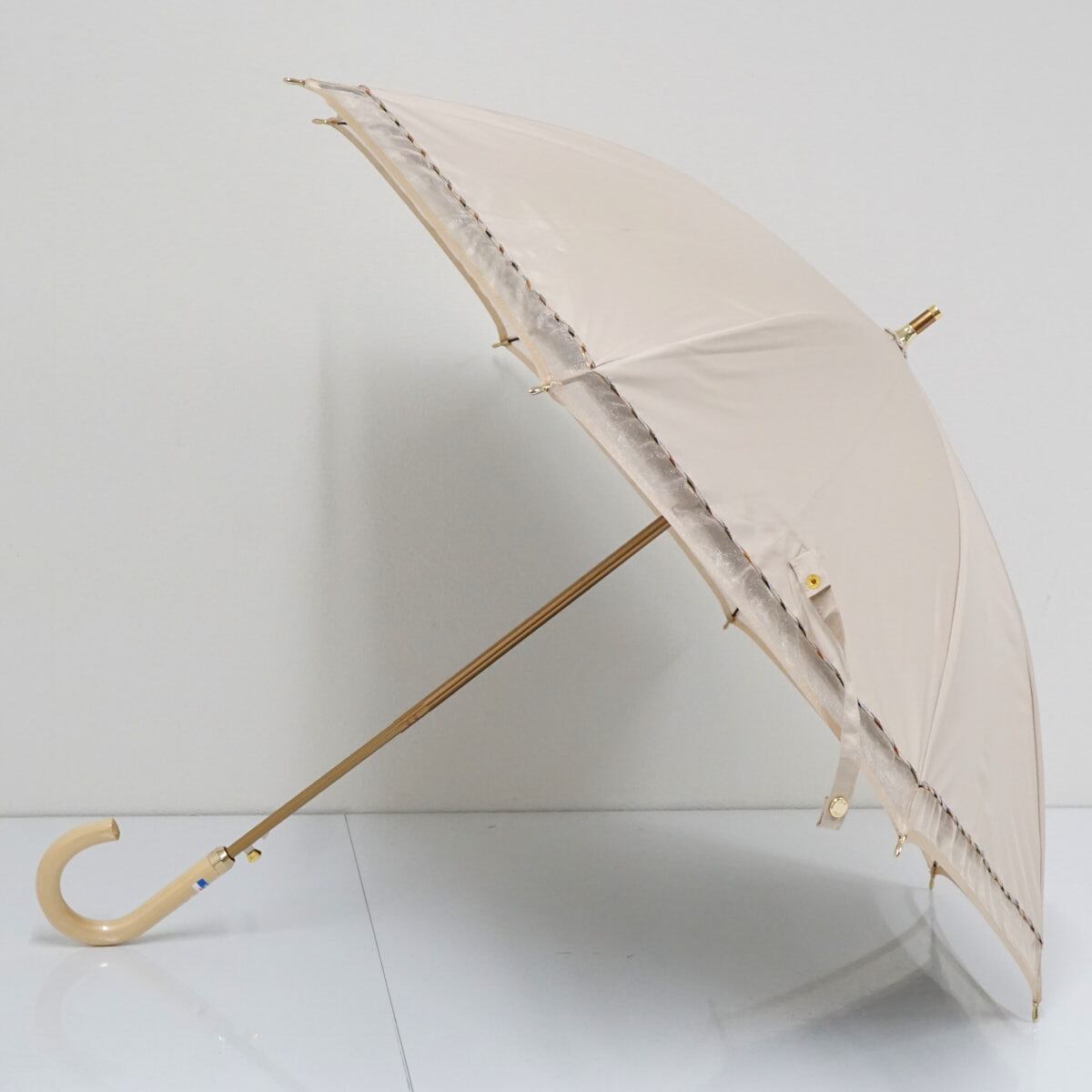 DAKS ダックス 晴雨兼用日傘 USED美品 ベージュ オーガンジー ロゴ 1級遮光 ジャンプ UV 遮光 47cm S2486