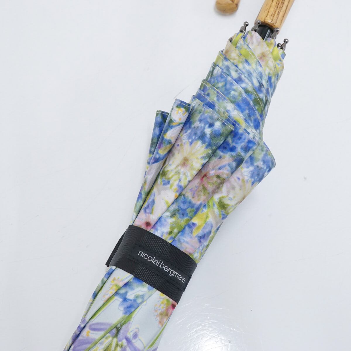 nicolai bergmann ニコライバーグマン 晴雨兼用日傘 USED美品 アガパンサスとアリウム柄 フラワー ブルー系 50cm S2488