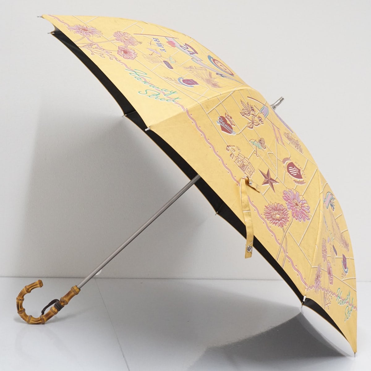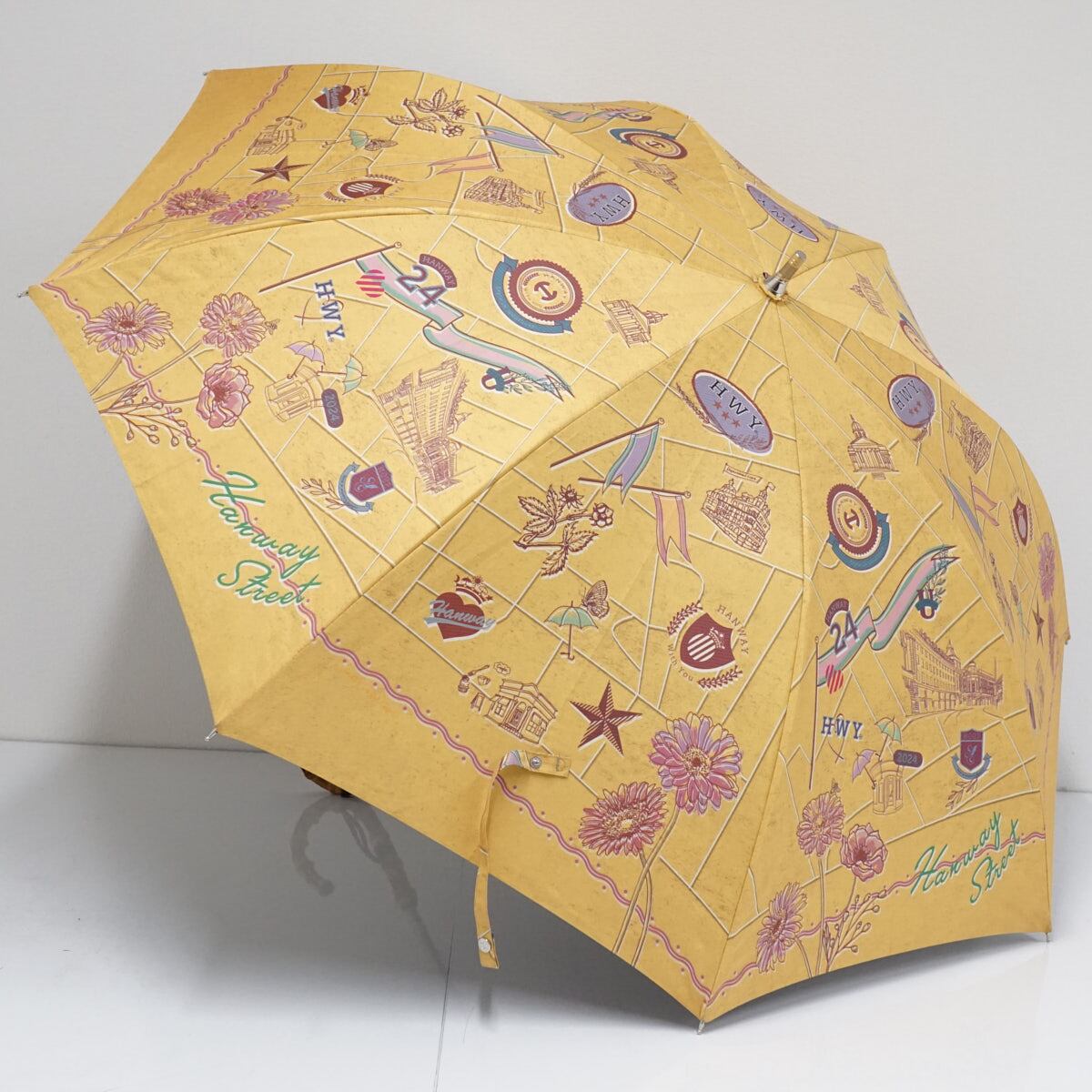 晴雨兼用日傘 HANWAY ハンウェイ USED美品 MAP ツーリストマップ イエロー 遮光 UV 軽量 55cm S2502