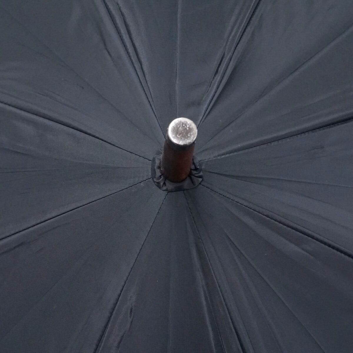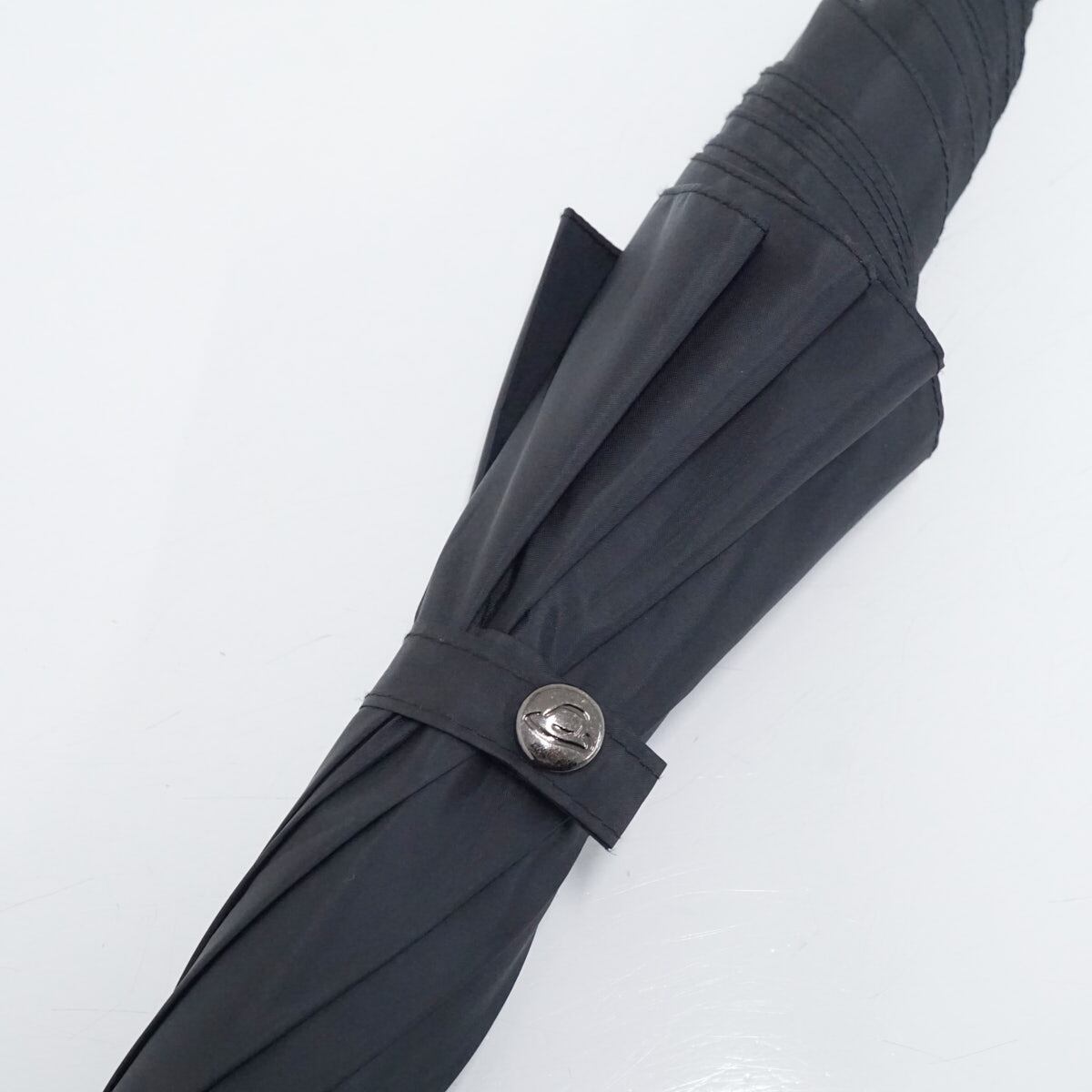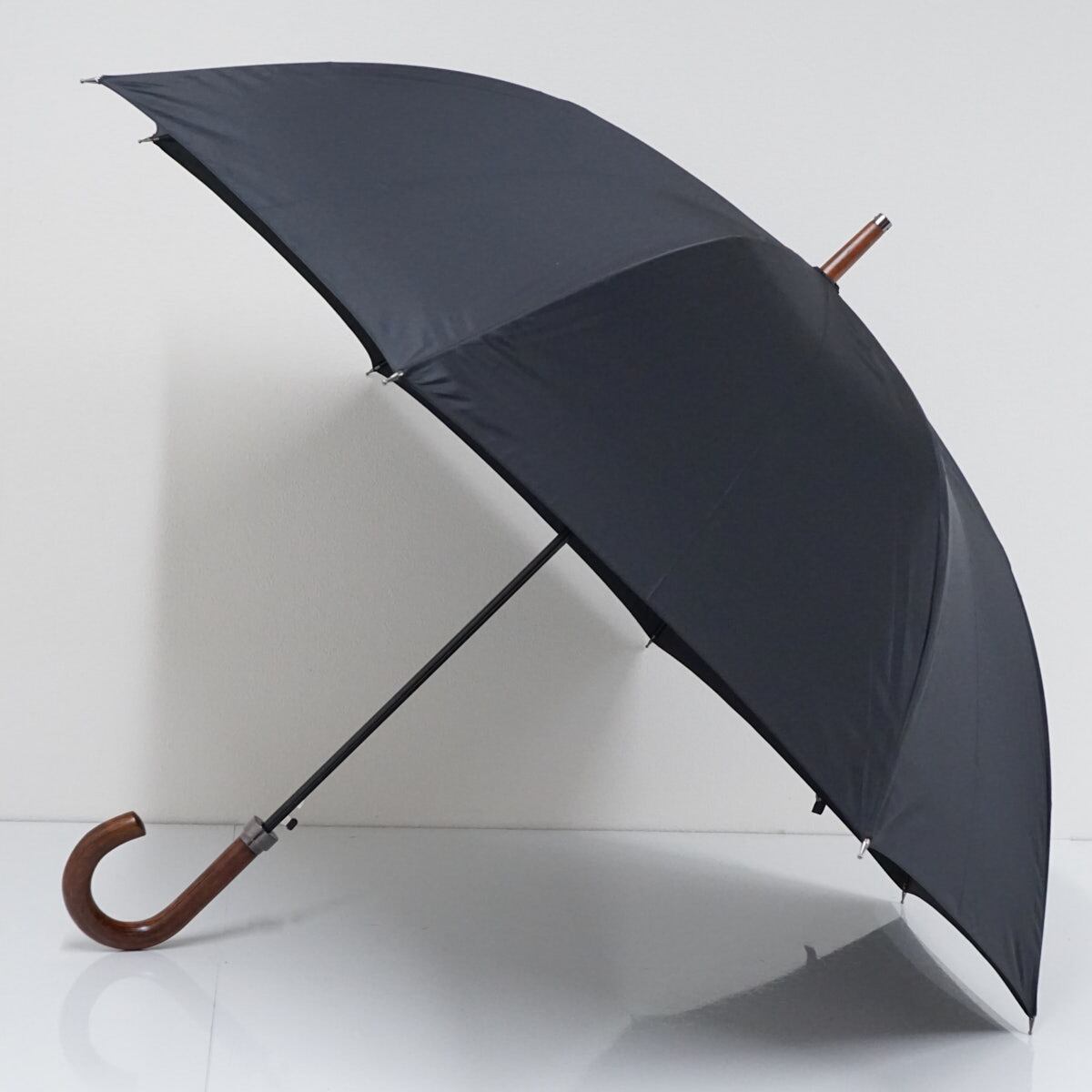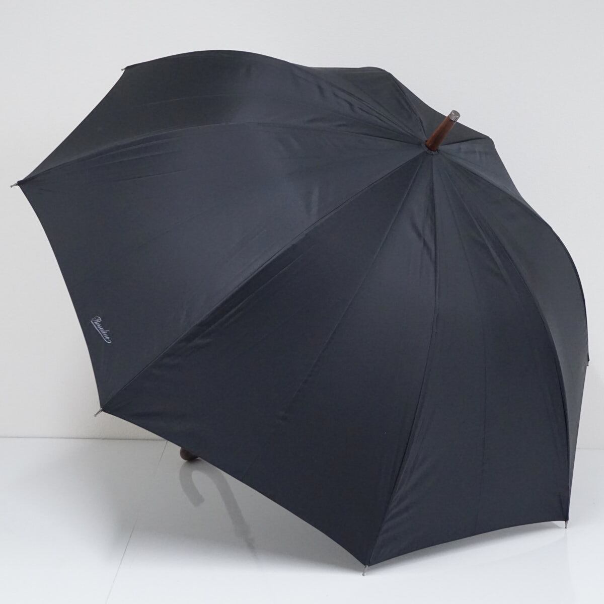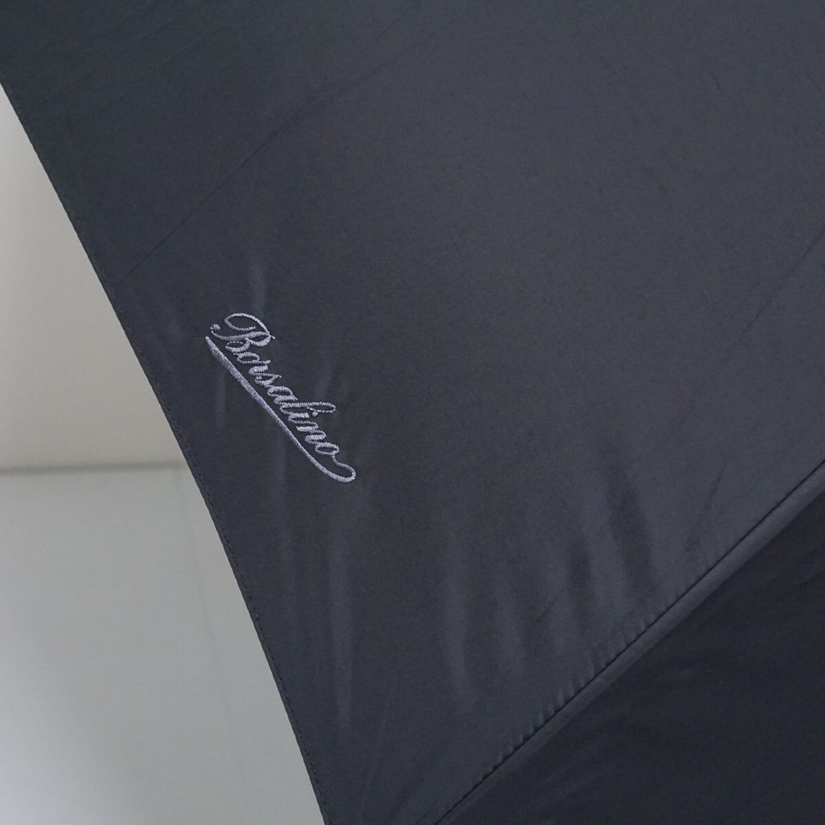 傘 Borsalino ボルサリーノ 高級 紳士 USED美品 高はっ水 ロゴ刺繍 ブラック シンプル 木製手元 大判65cm ジャンプ A2505
