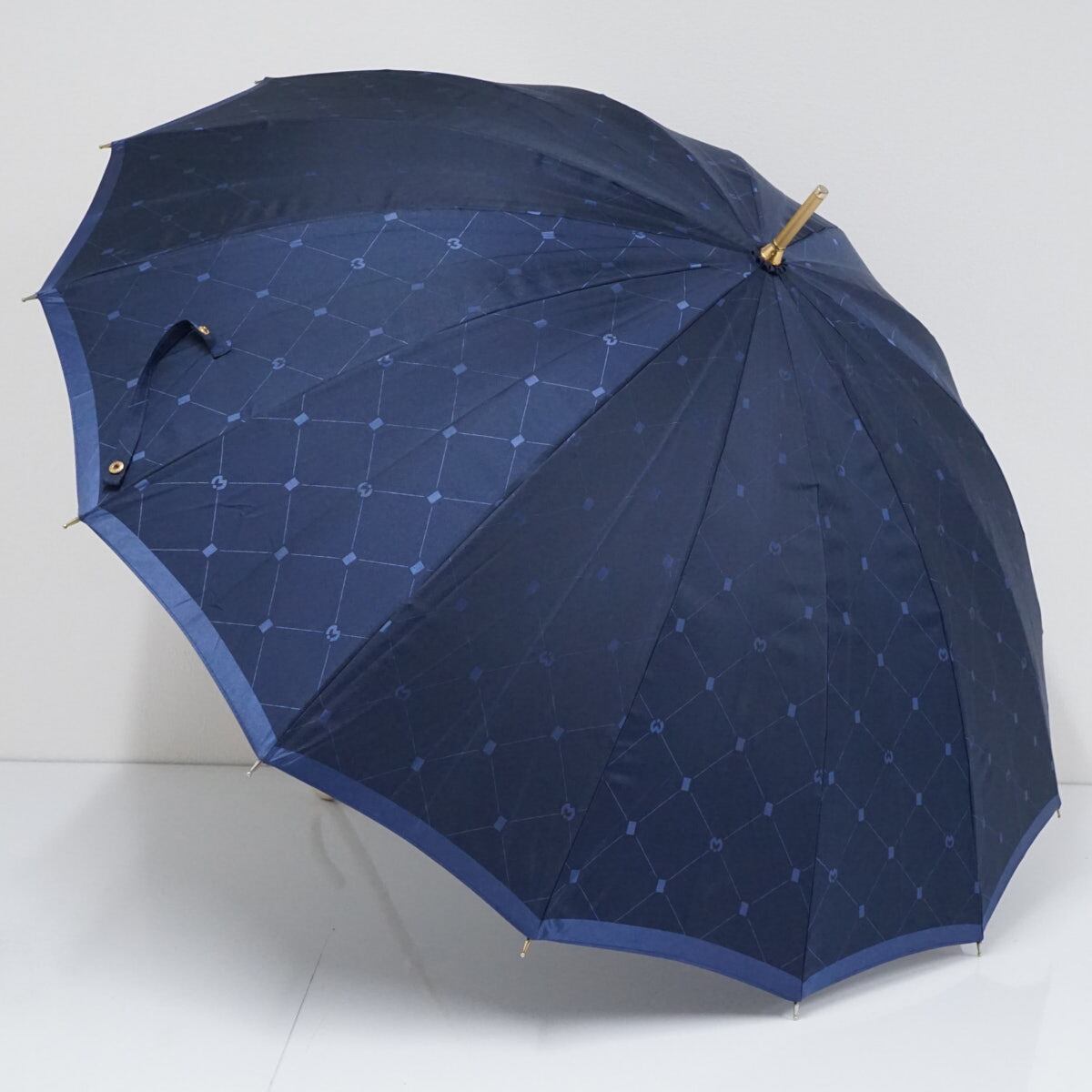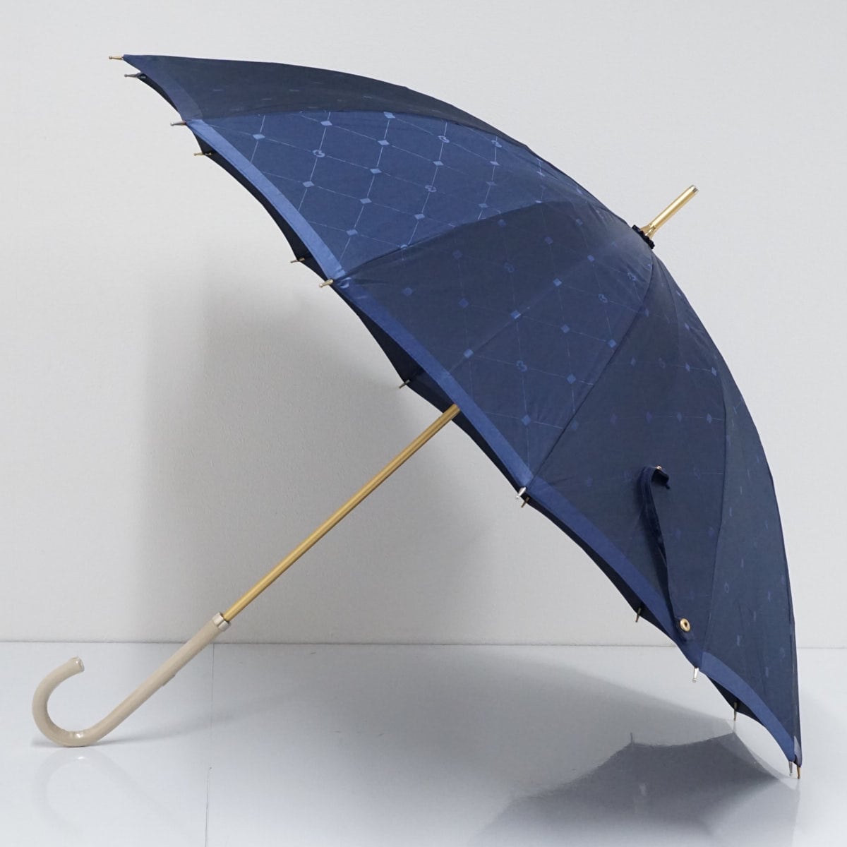 mila schon ミラショーン 14本骨傘 USED美品 ジャガード ネイビー ブランド 55cm 多間 A2506