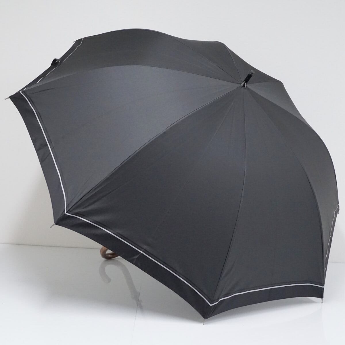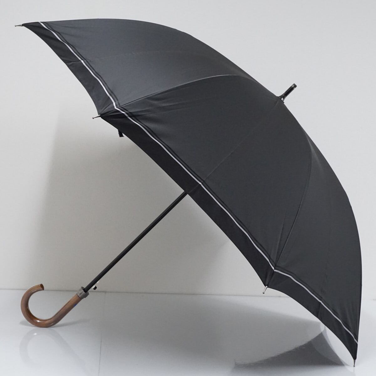 傘 Paul Stuart ポールスチュアート 紳士傘 USED美品 ブラック グレー ボーダー ブランド ジャンプ 大判 70cm S2507
