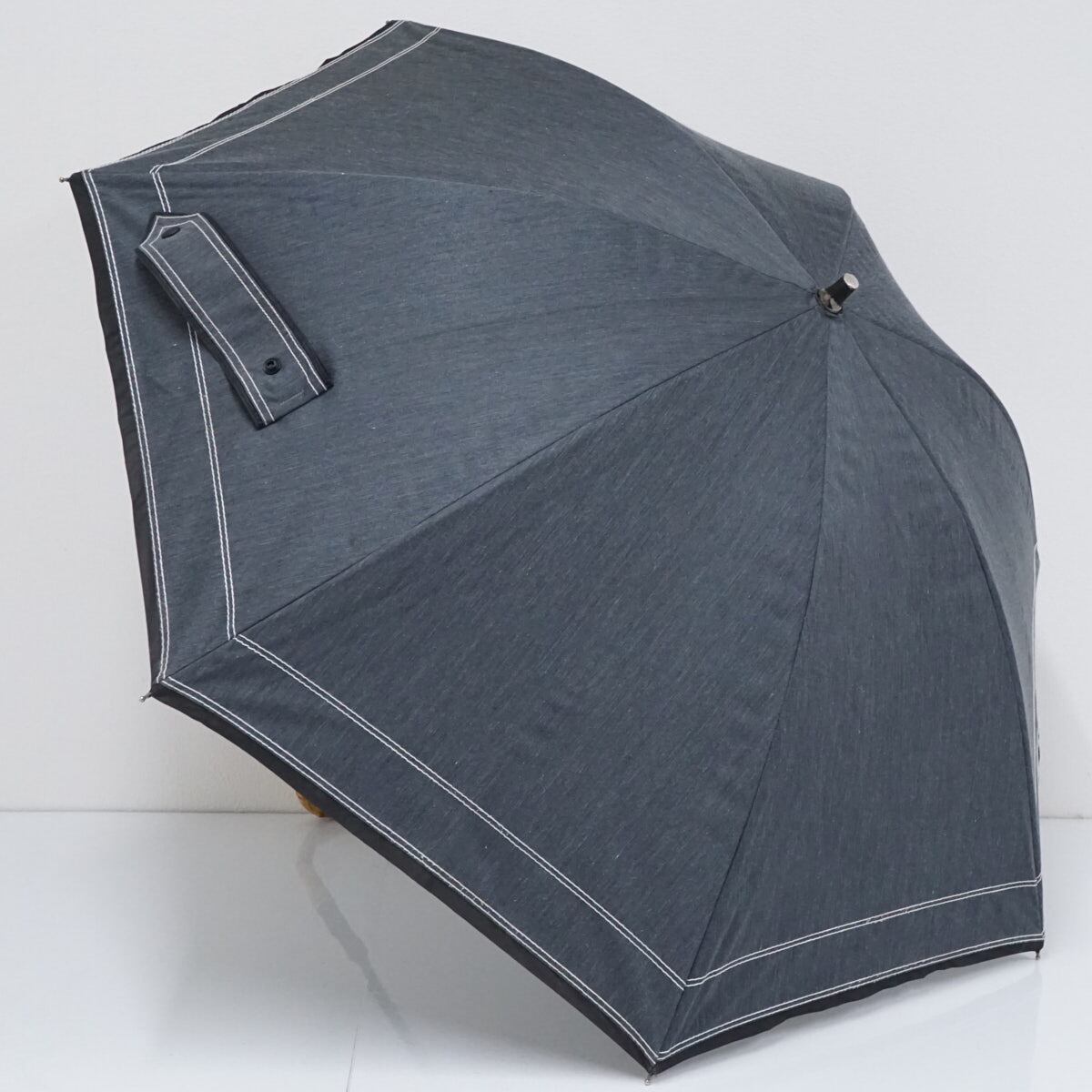 晴雨兼用日傘 AURORA オーロラ サマーシールドLi USED美品 ダンガリー ダークグレー グラス骨 UV 遮光 遮熱 50cm S2518