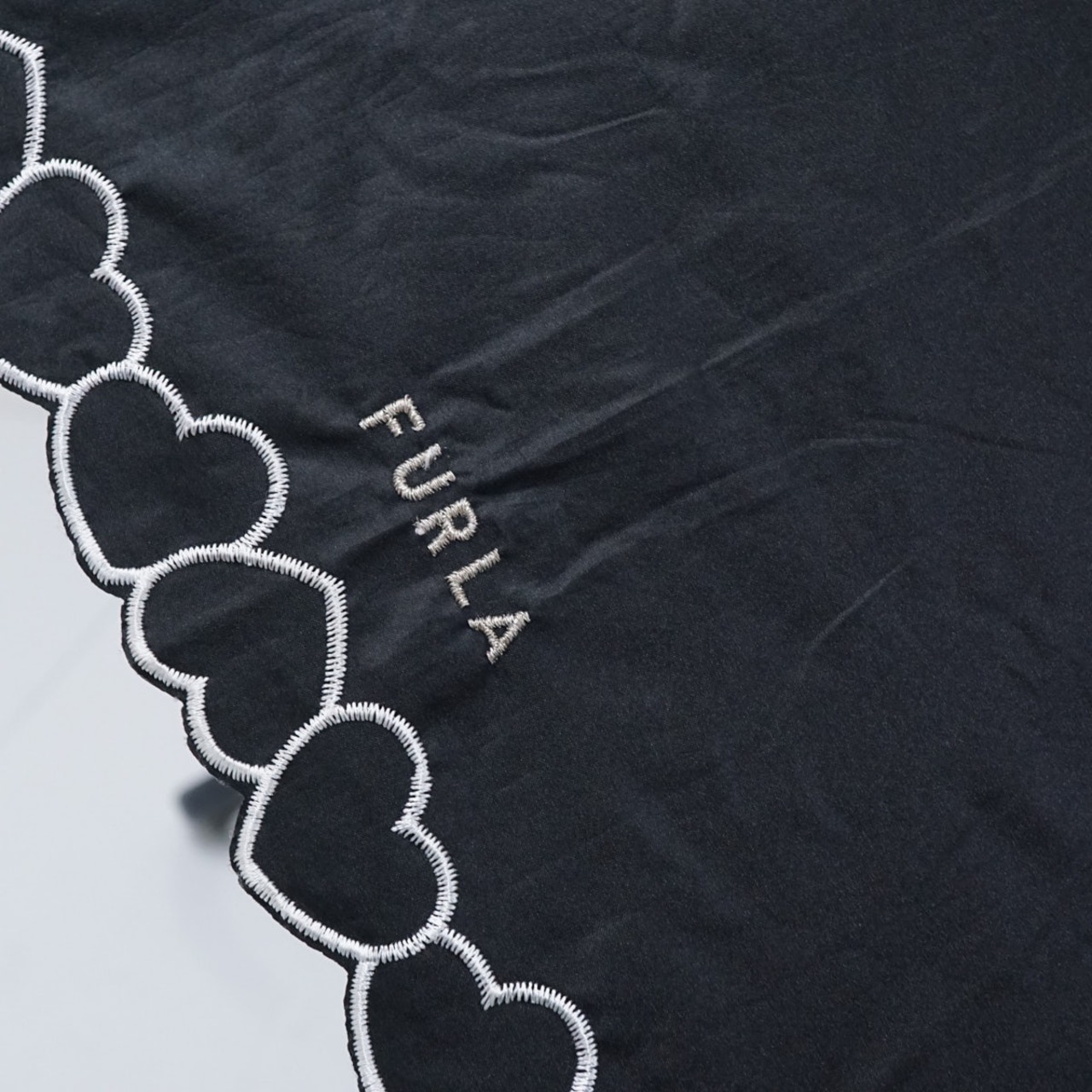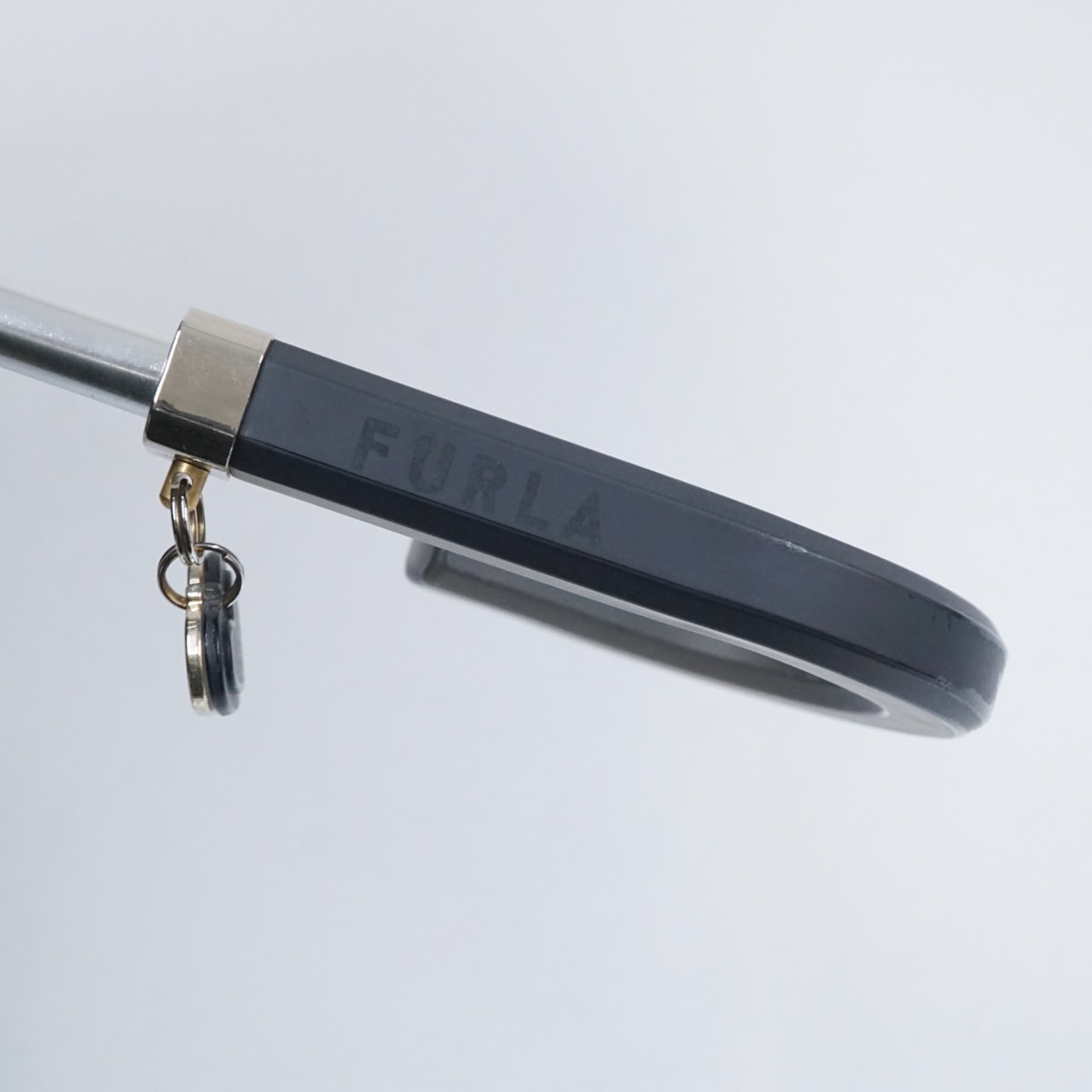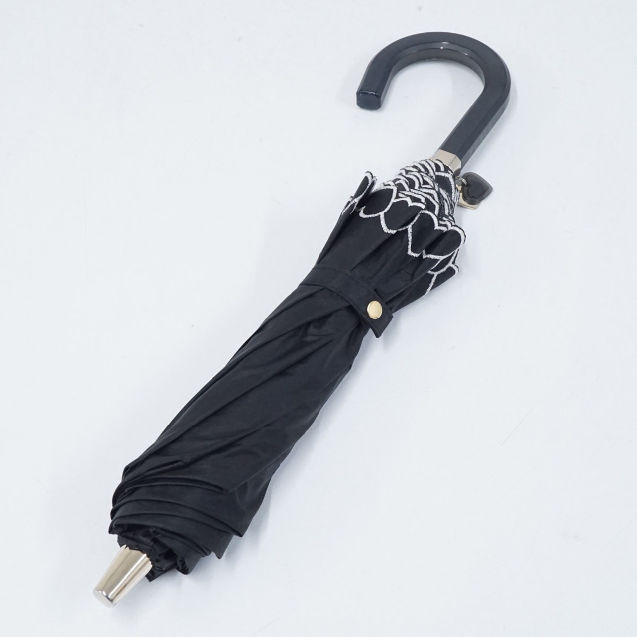 折りたたみ日傘 FURLA フルラ USED品 晴雨兼用 ハート ブラック チャーム UV 50cm FS8945