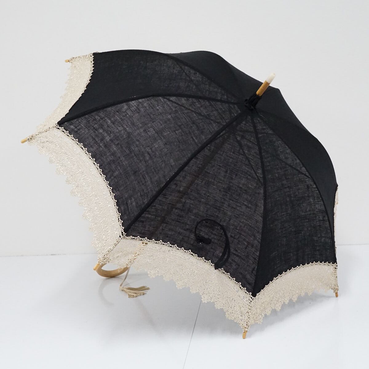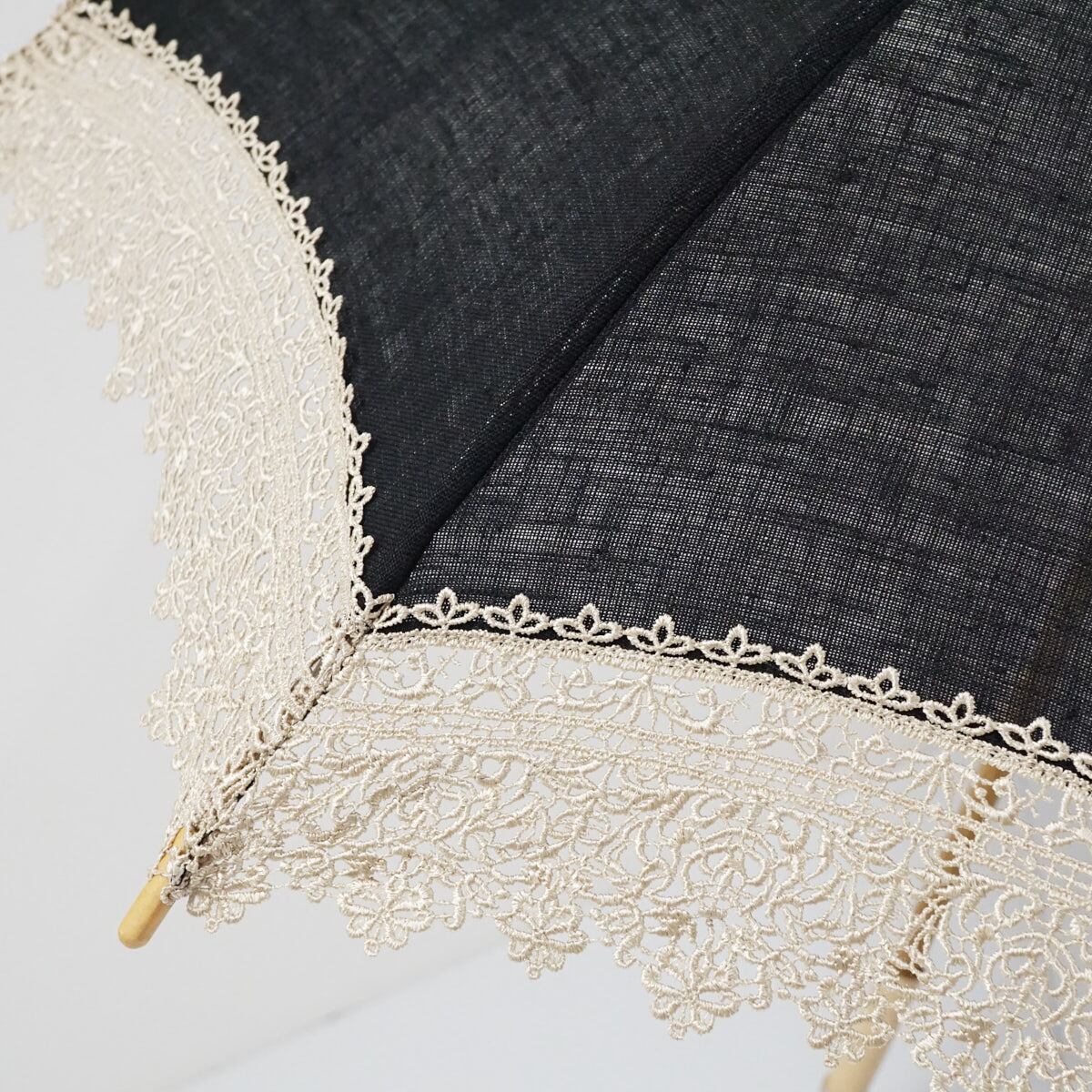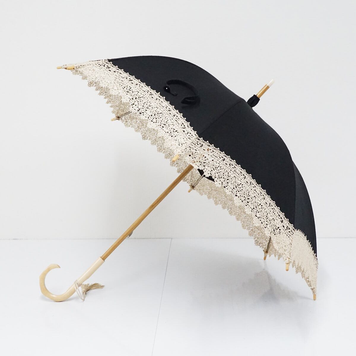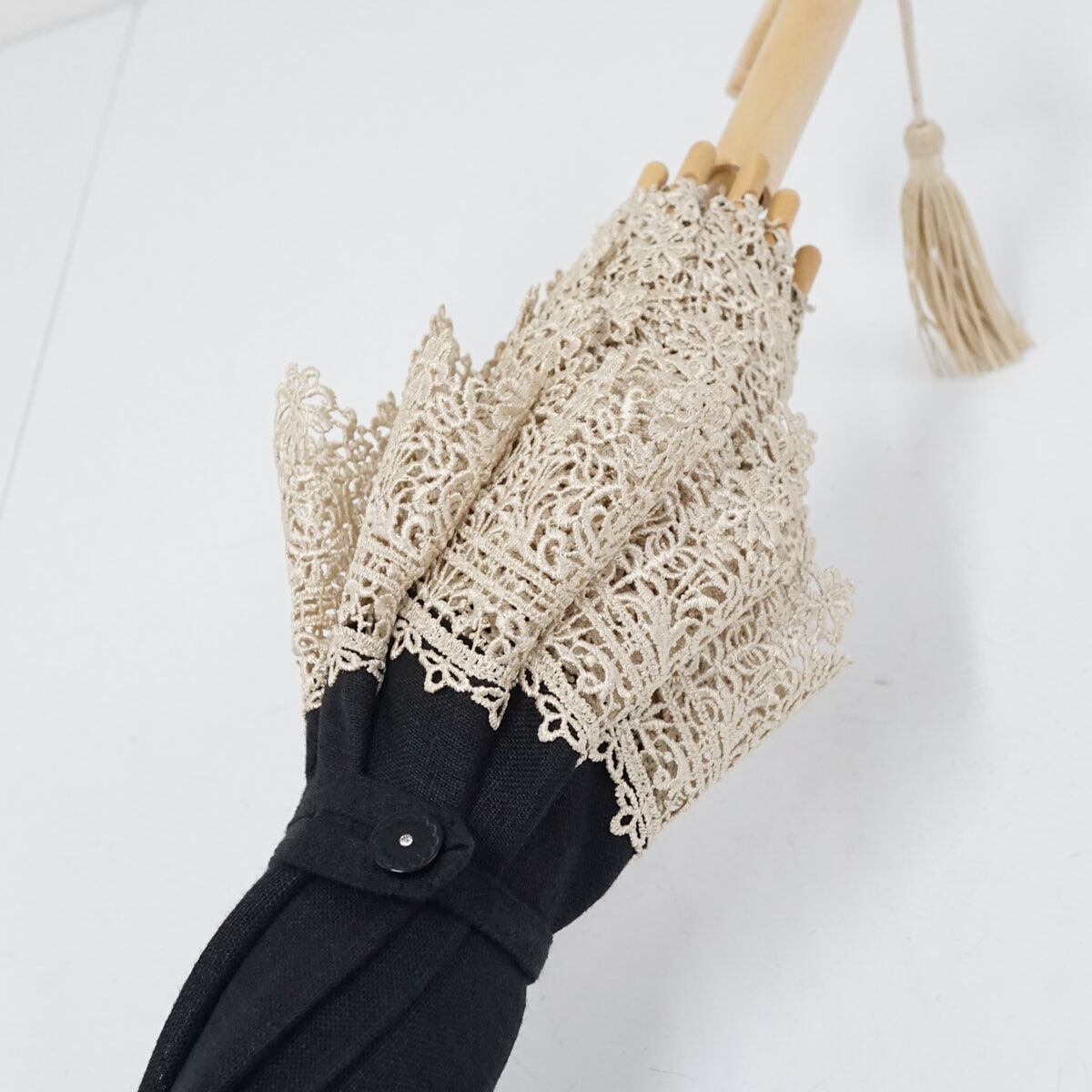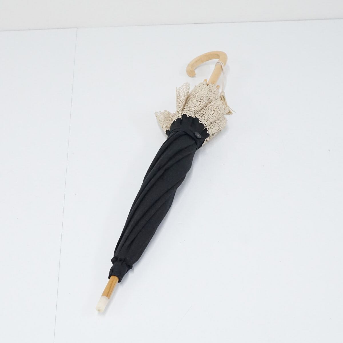高級日傘 USED美品 レース ブラック シンプル 天然木 47cm A2513