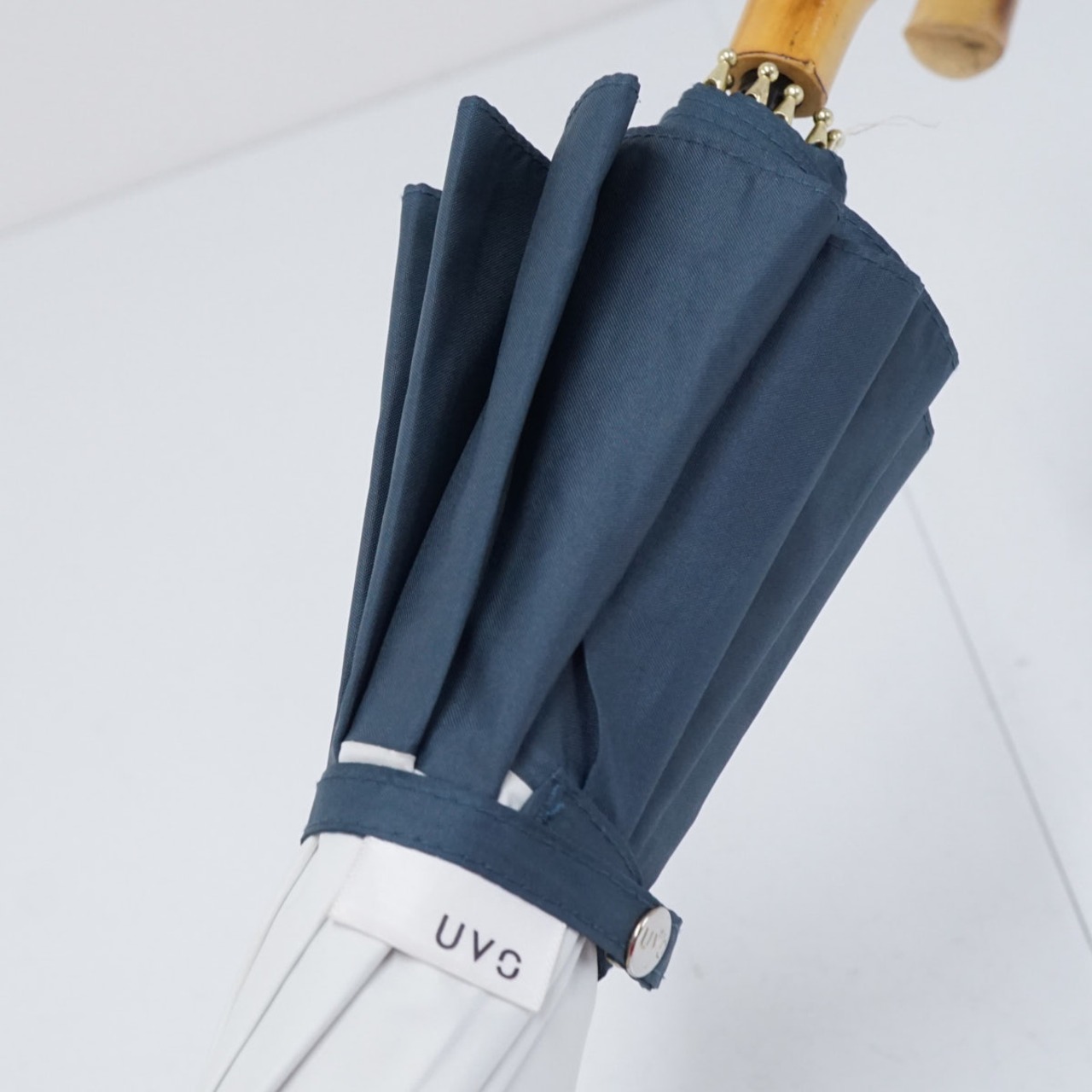 日傘 完全遮光 UVO Wpc. ウーボ USED美品 切継 晴雨兼用 オフ×ブルーグレー 12本骨 UV 遮熱 遮光 最強の日傘 UPF50+ 55cm A2498