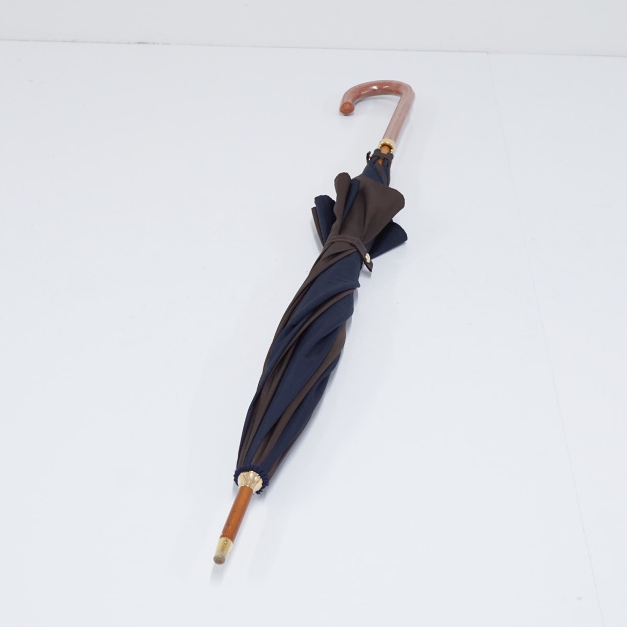 傘 Di Cesare Designs ディチェザレデザイン USED美品 リズム 2トーン ネイビー×ブラウン モダン 高級 グラス骨 60cm S2521