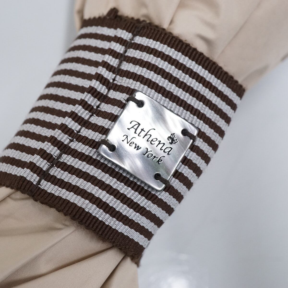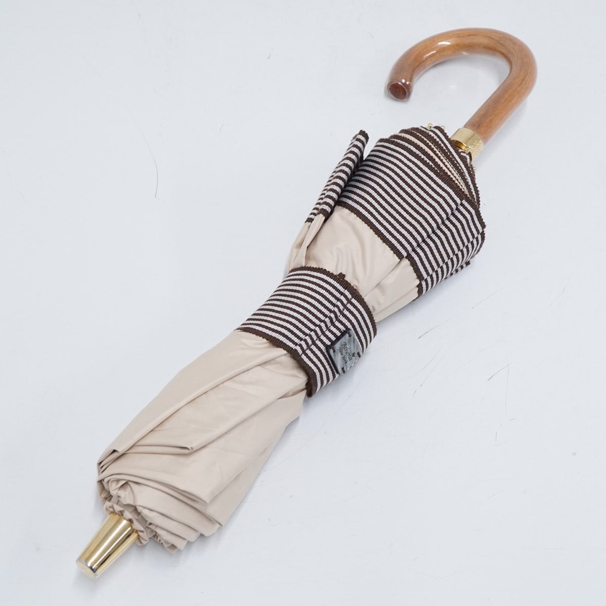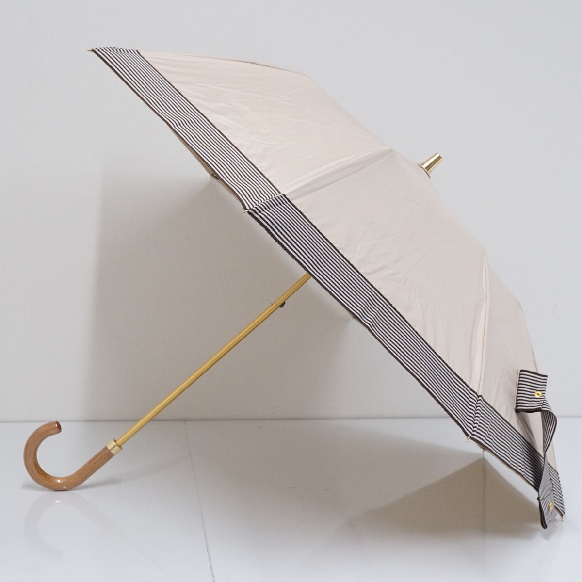 折りたたみ日傘 Athena New York アシーナニューヨーク USED美品 晴雨兼用 ボーダー グログラン シンプル ベージュ UV 高級 50cm FS8940