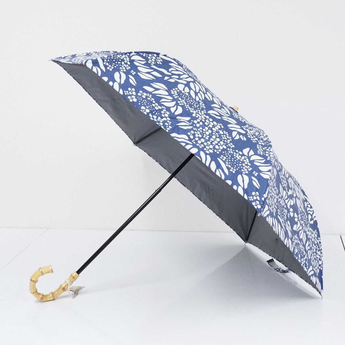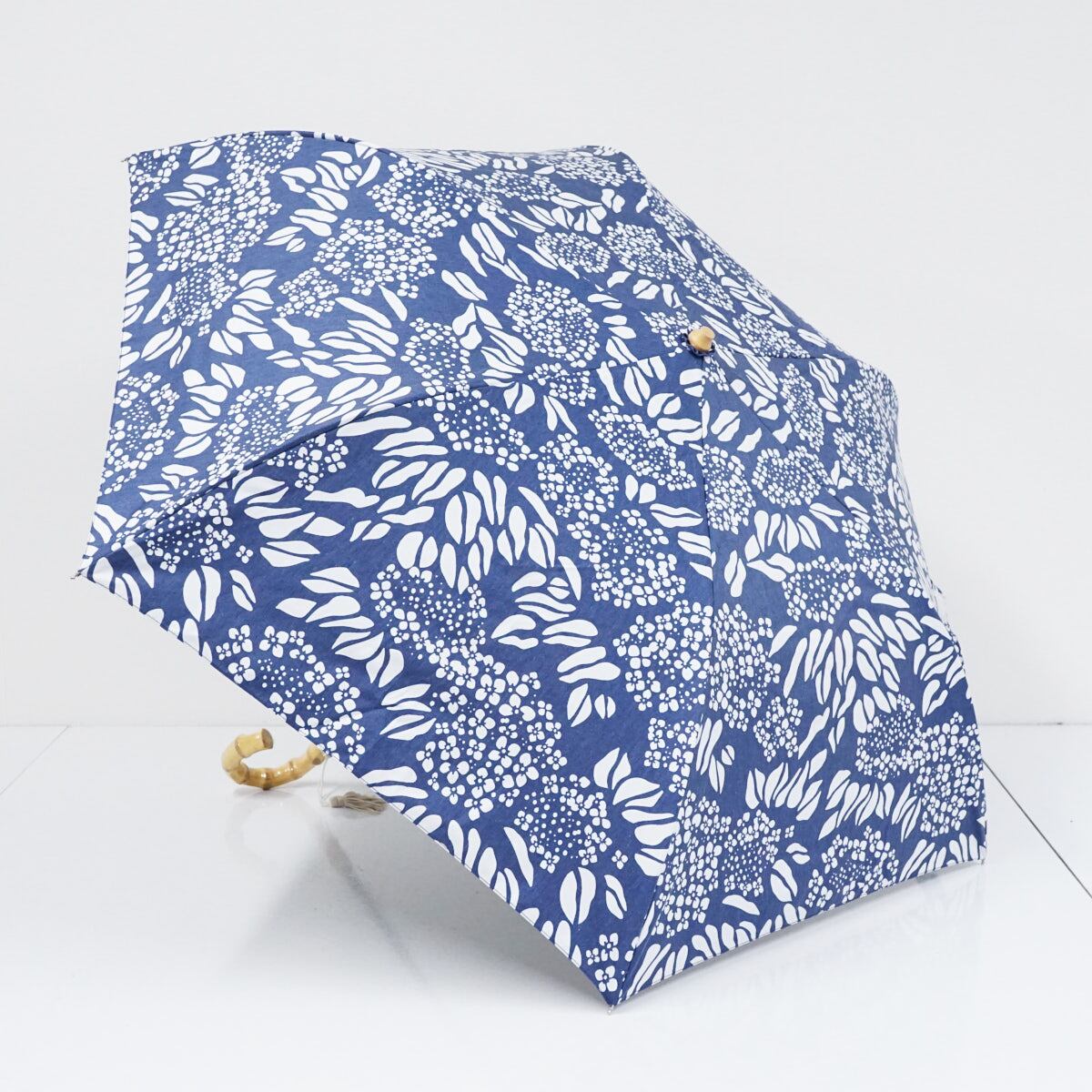折りたたみ日傘 河馬印本舗 USED美品 あじさい 留紺 晴雨兼用 UV 遮光 折りたたみ傘 50cm KR FA8948