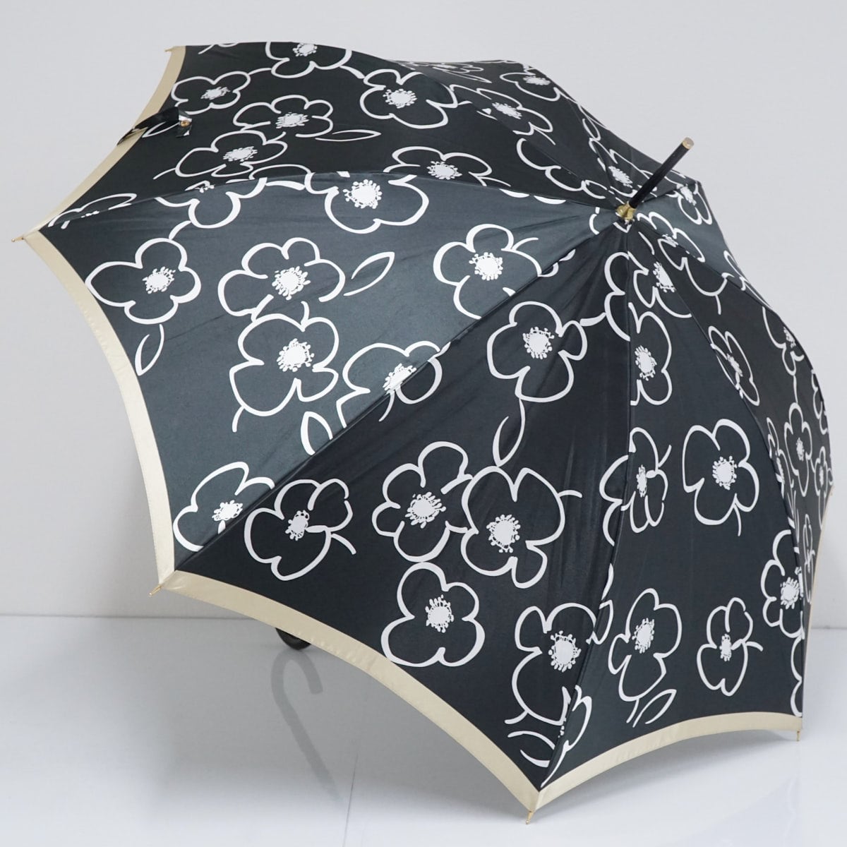 HANAE MORI ハナエモリ 傘 USED美品 フラワー ブラック ジャンプ ブランド 58cm S2523