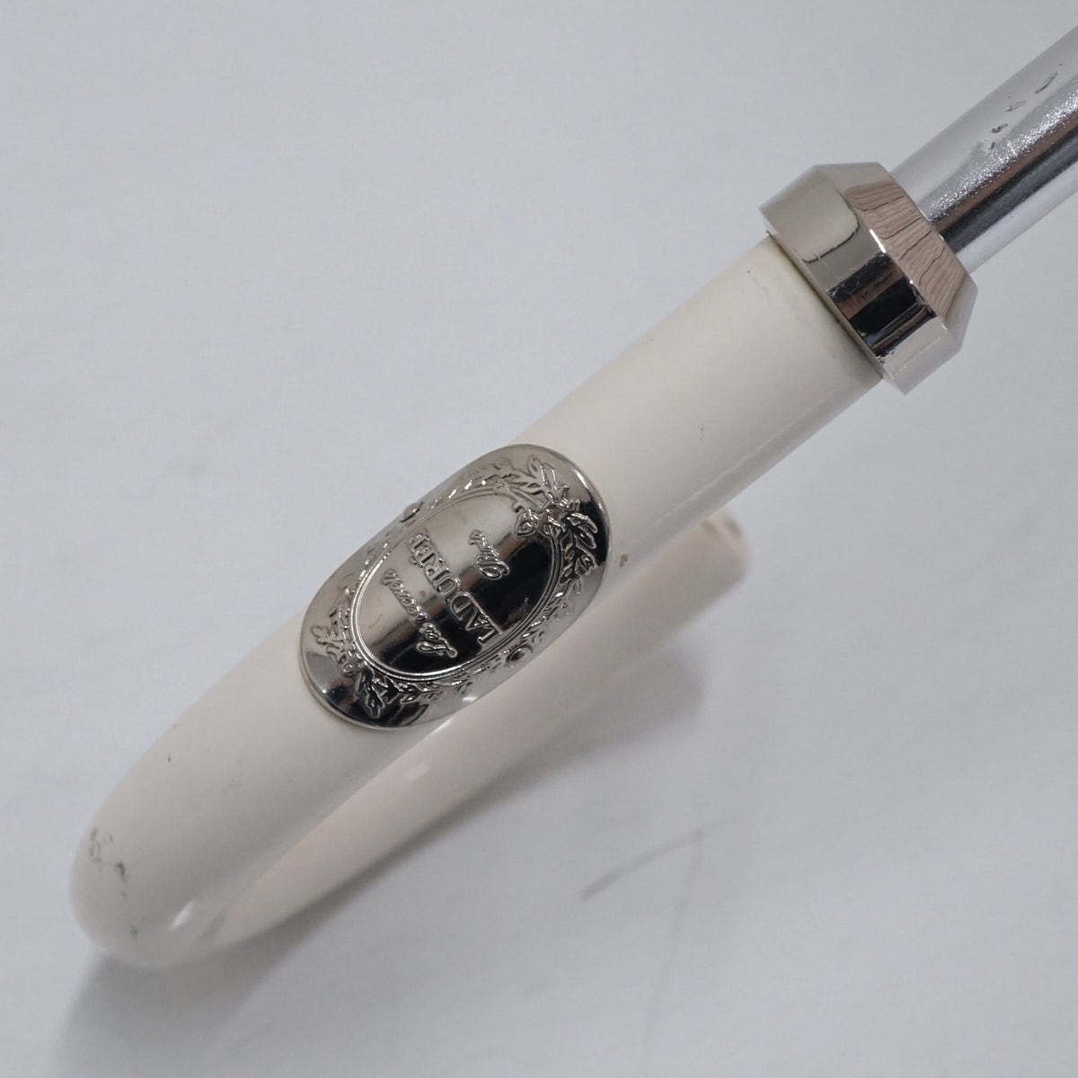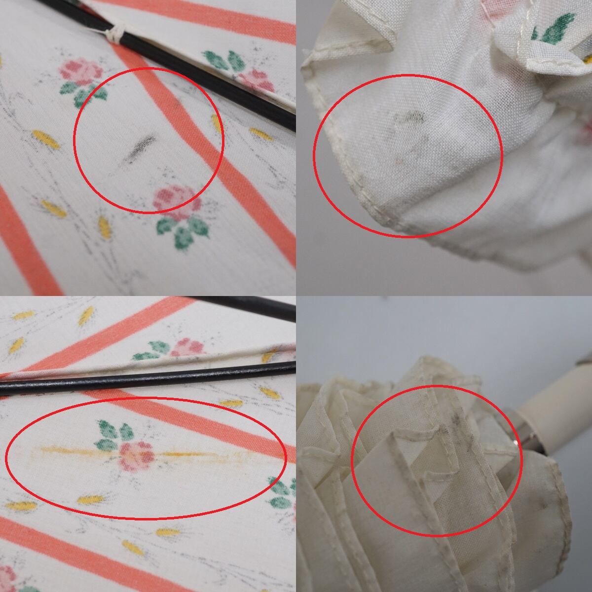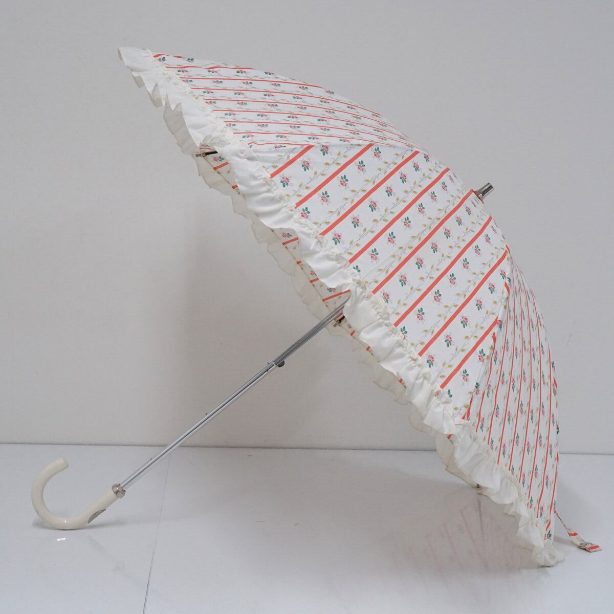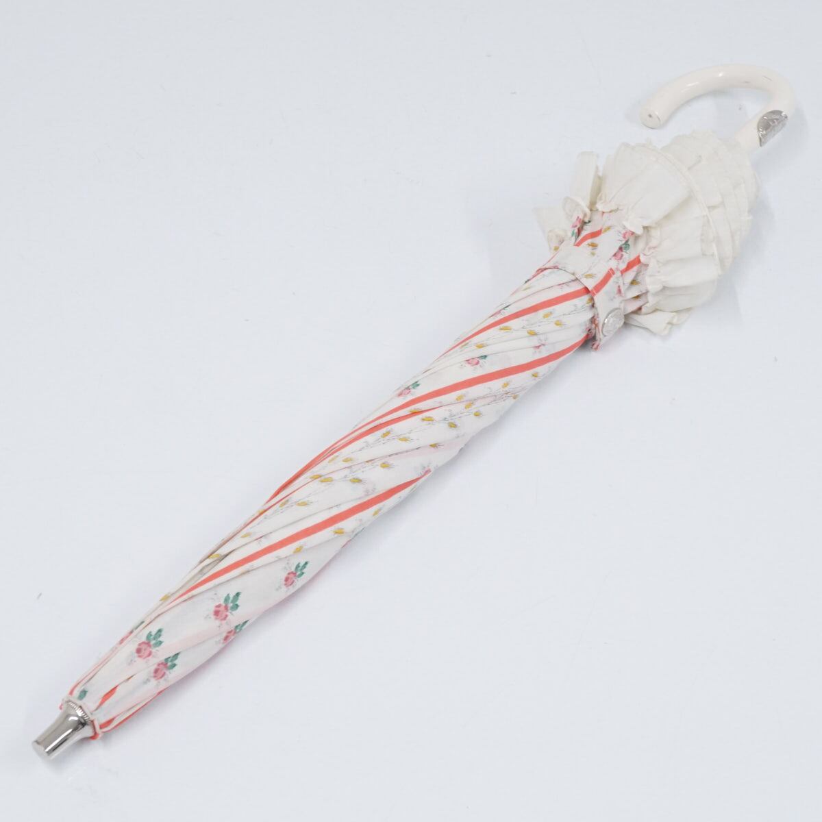 晴雨兼用日傘 LADUREE ラデュレ USED美品 フラワープリント フリル ストライプ グラス骨 かわいい 47cm S2524