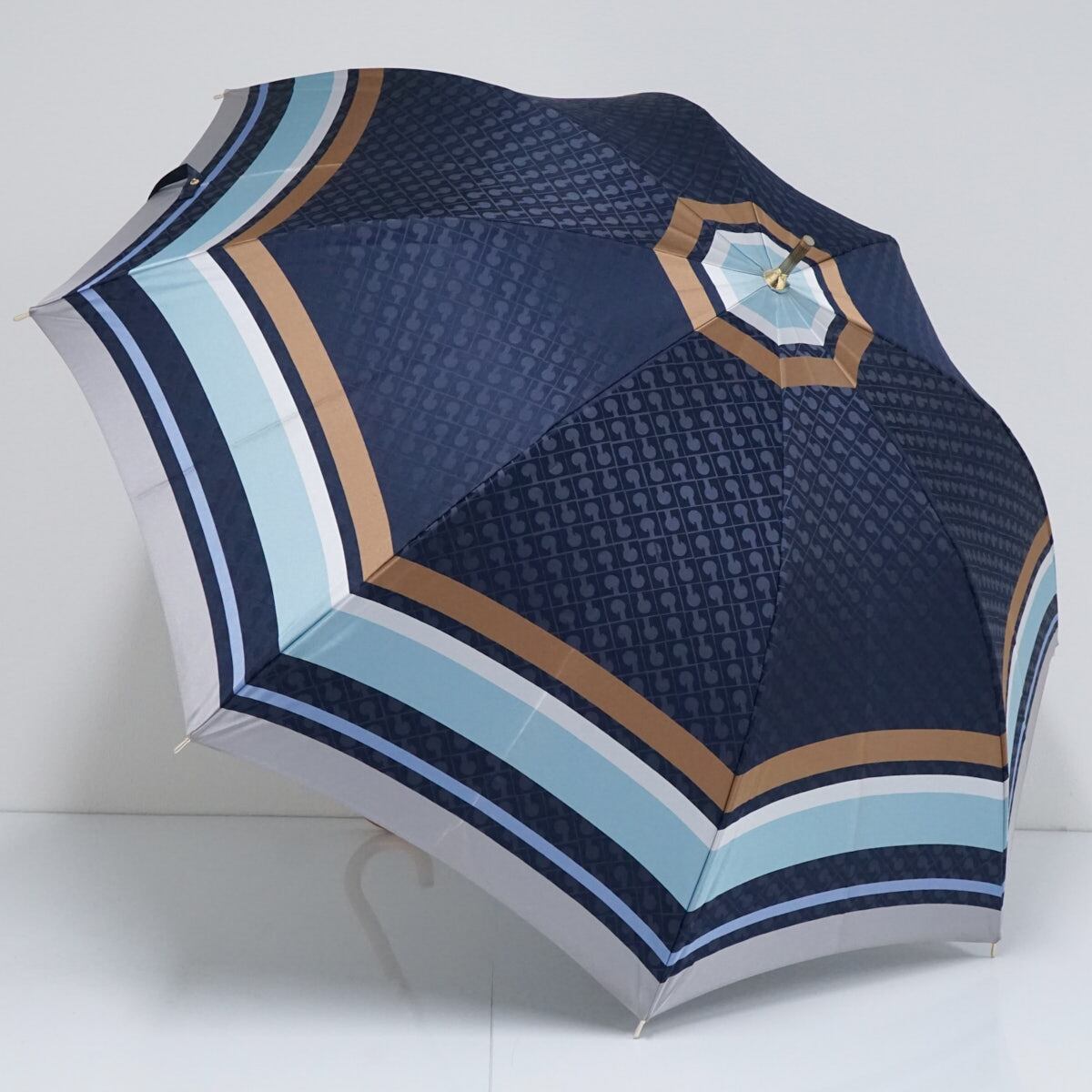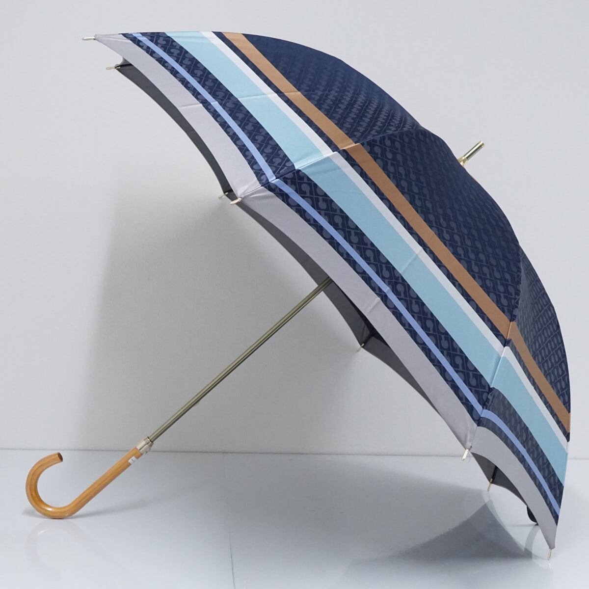 傘 GHERARDINI ゲラルディーニ USED美品 ロゴ ネイビー系 ボーダー おしゃれ 高級 ブランド 60cm S2527