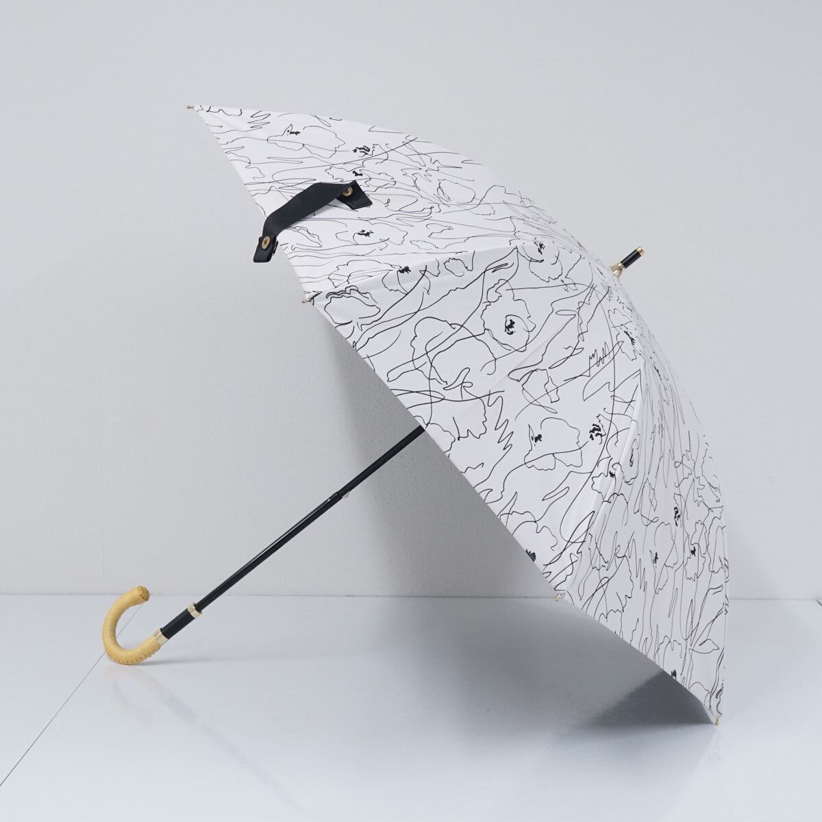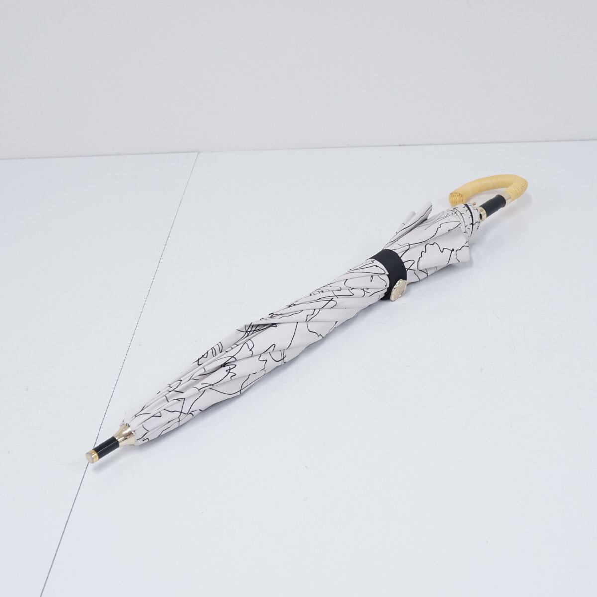 日傘 晴雨兼用 Beaurance ビューランス アートフラワー ホワイト USED品 東レ サマーシールドLi グラス骨 遮光 遮熱 UV ラタン巻き 50cm S2500