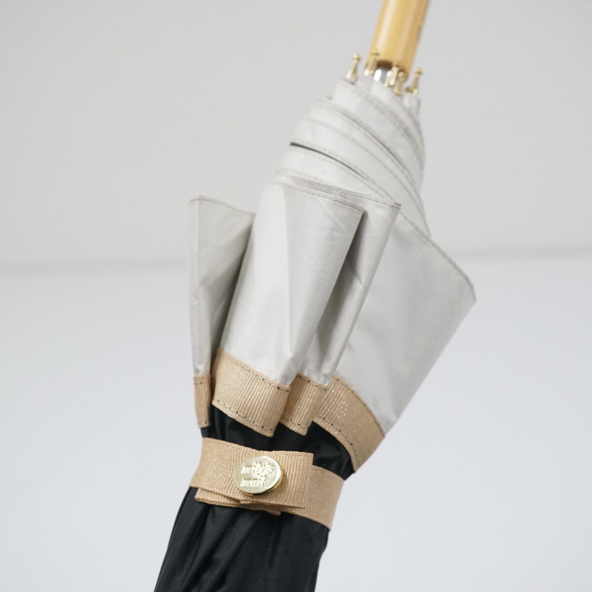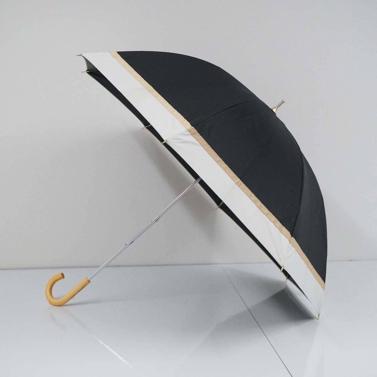 【1000円】 日傘 晴雨兼用 millys mail ミリーズメール USED美品 ブラック×オフホワイト パイピング リボン UV 遮光 55cm BT2567