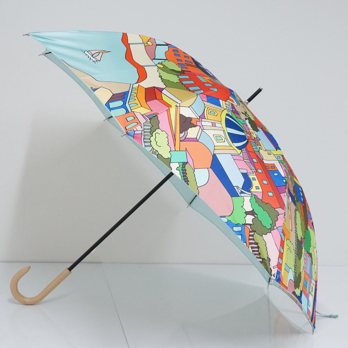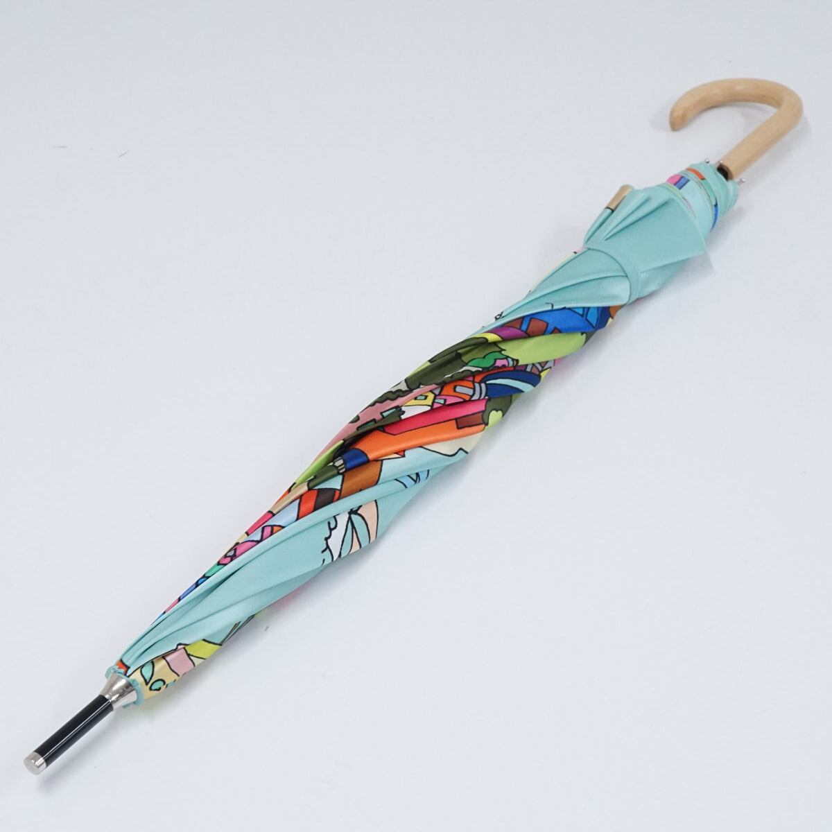 高級傘 HANWAY×Dieffe Kinloch USED美品 ハンウェイ ディエッフェ・キンロック ライトブルー系 カラフル 60cm S2559