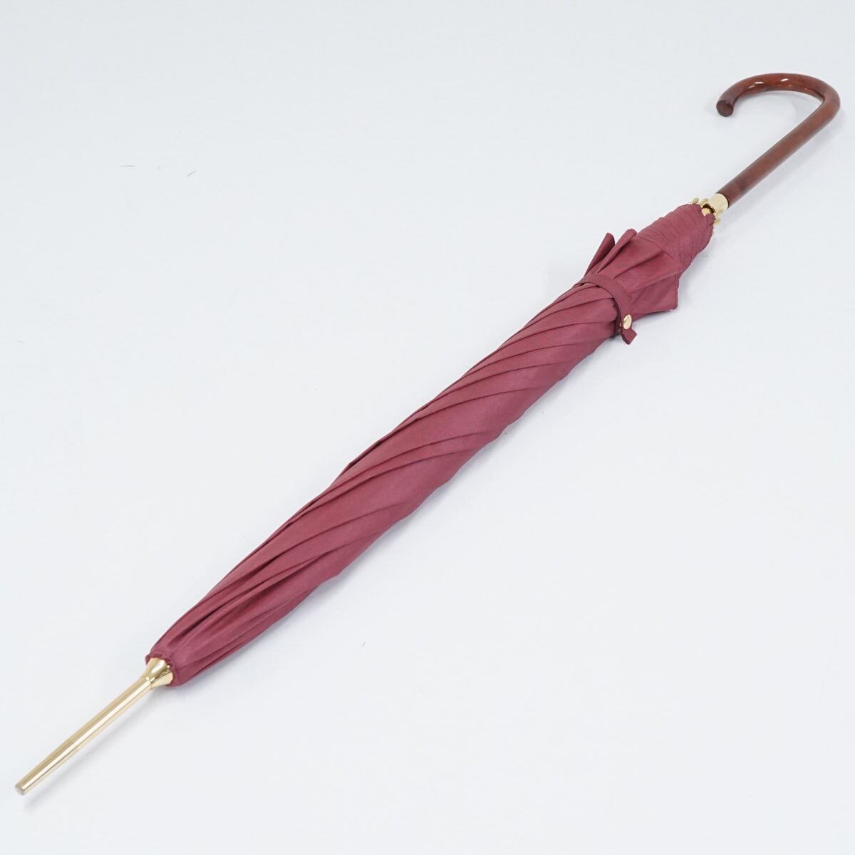 光沢感あるバーガンディの無地生地を使用したシンプルなデザインの傘です。