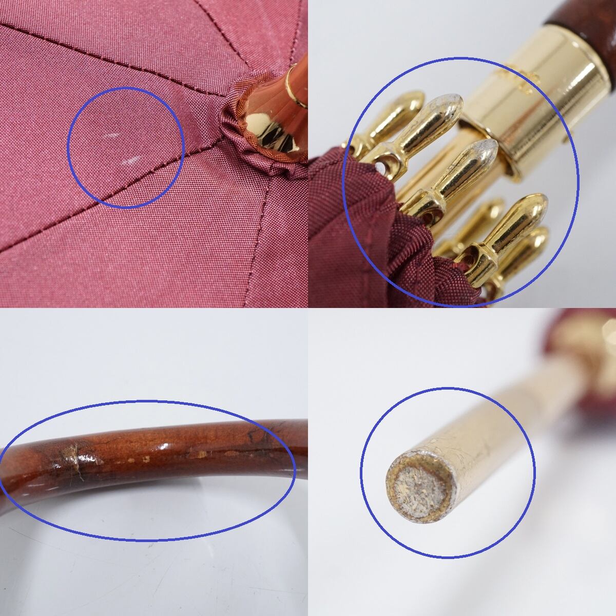 Paul Stuart ポールスチュアート 傘 USED美品 レディース レッド系 グラス骨 シンプル ブランド 長傘 雨傘 55cm A2580