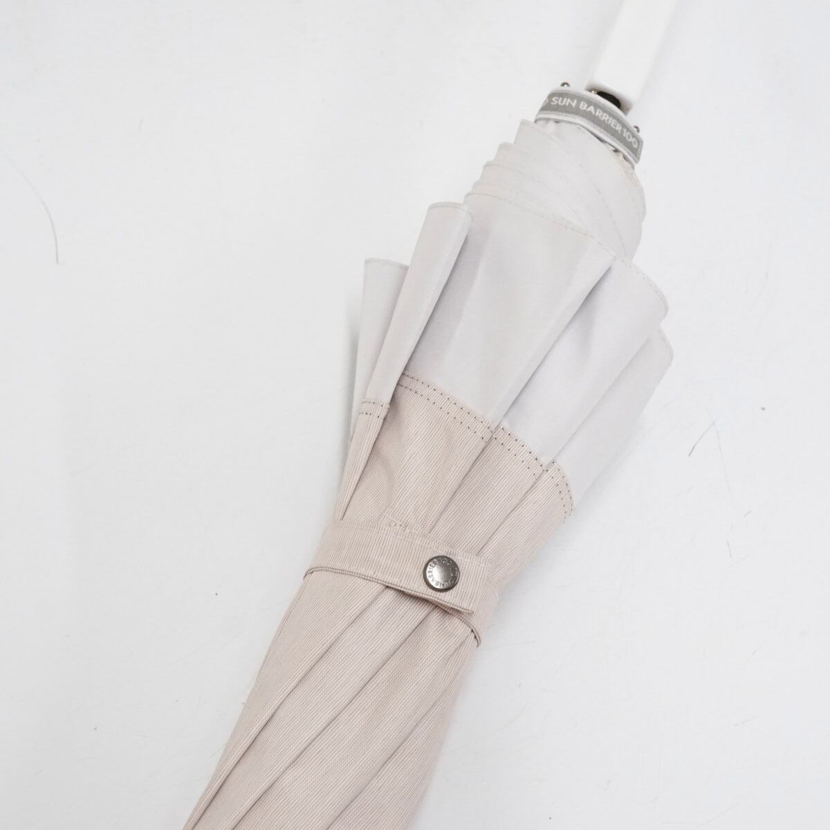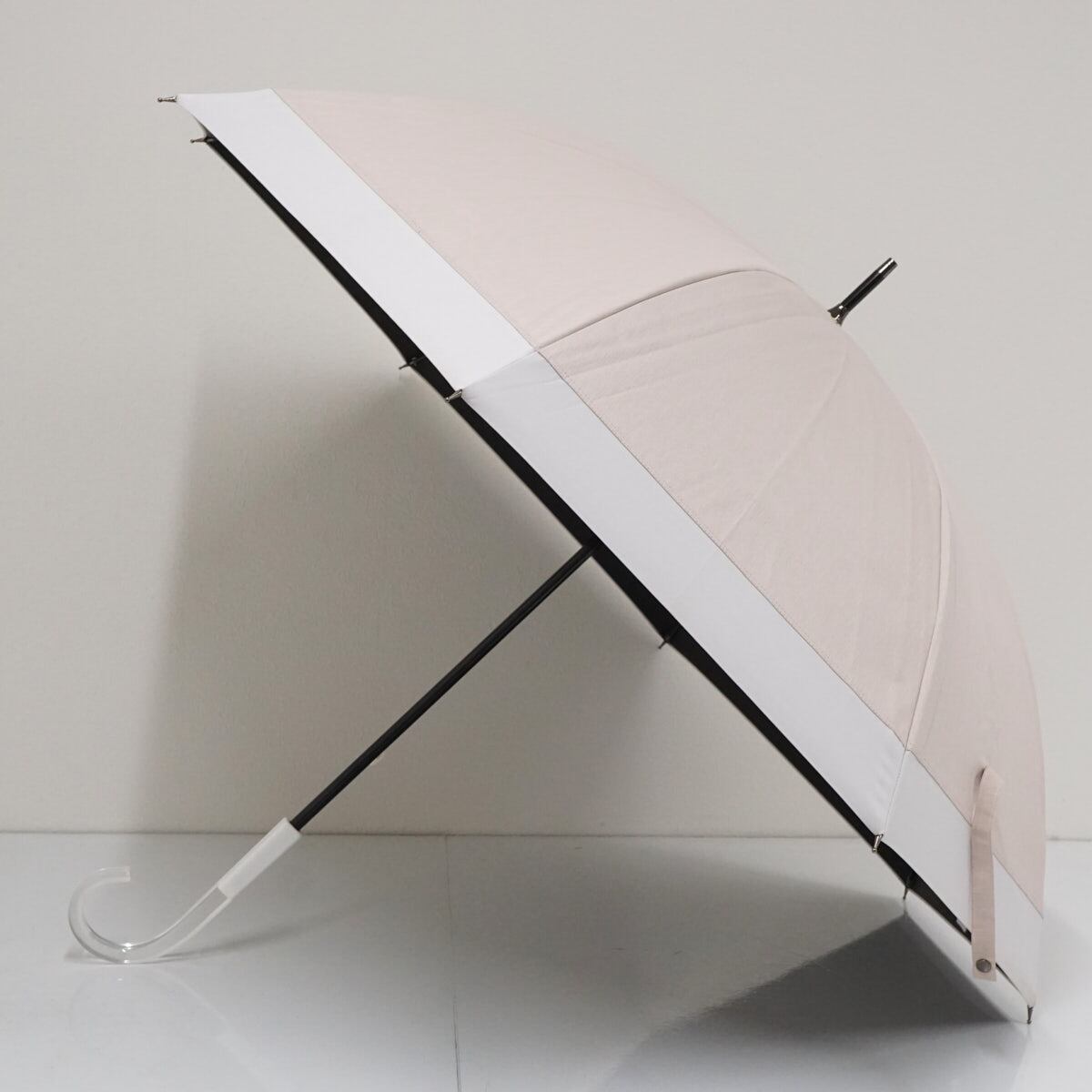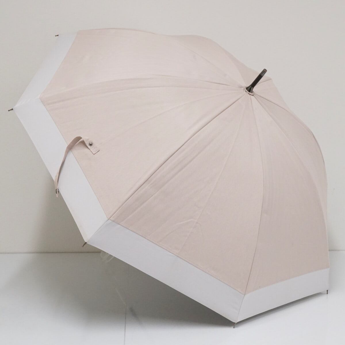 日常使いしやすいピンクベージュと白のコンビカラーで、日傘の中では大き目のサイズ設計が特徴です。