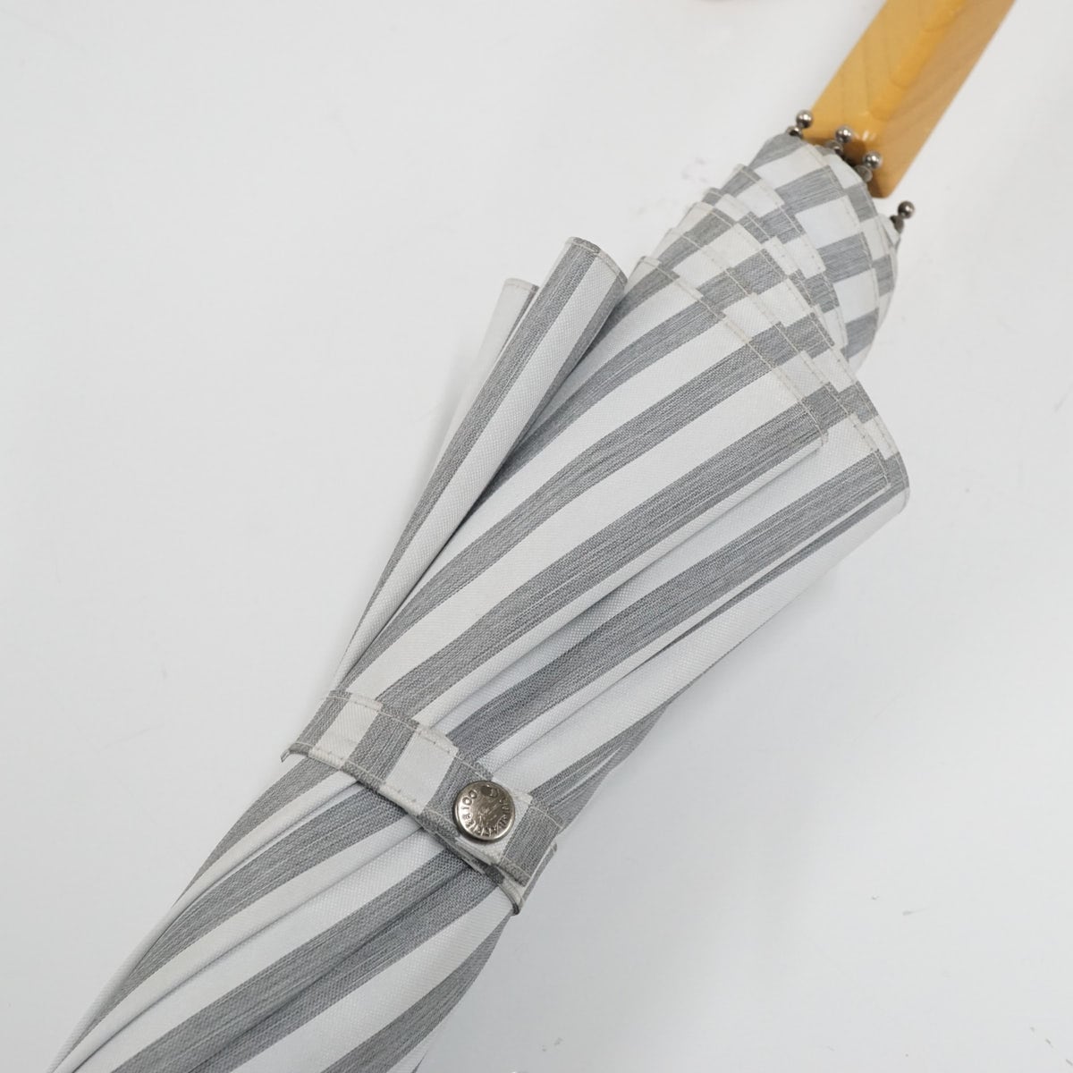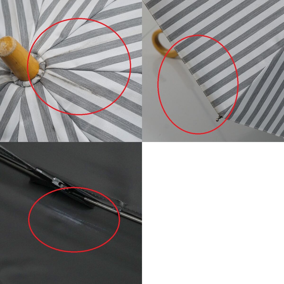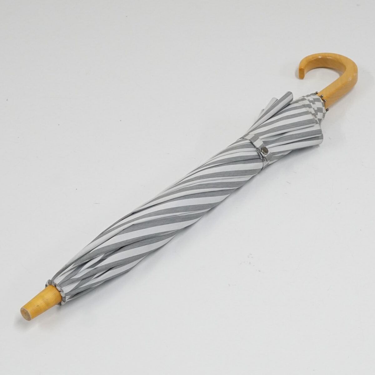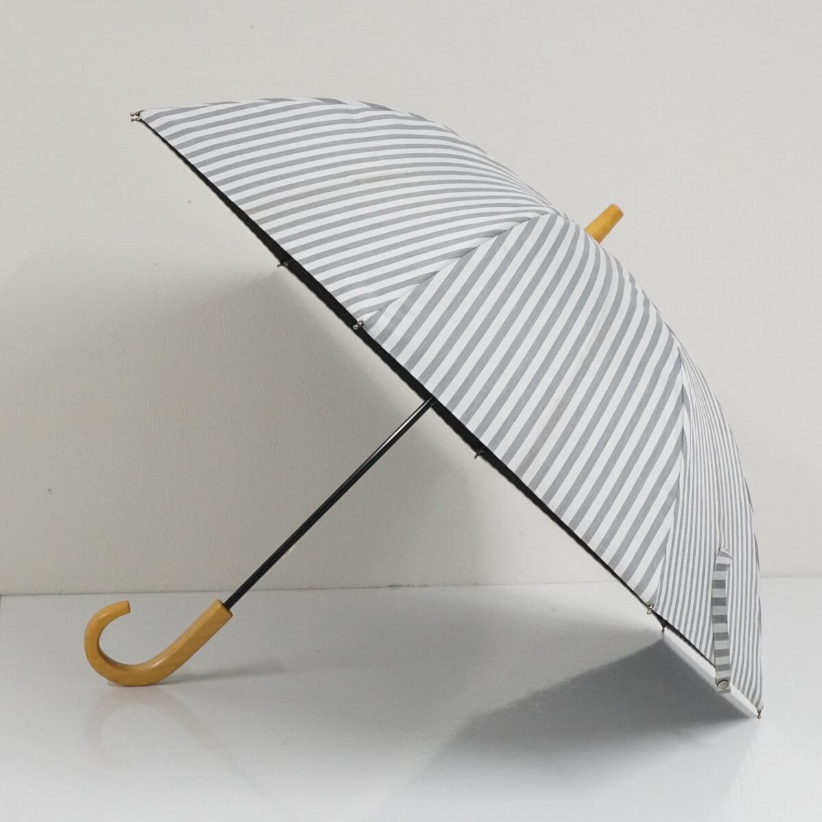サンバリア100 完全遮光日傘 USED美品 Sサイズ ストライプ グレー UV カーボン骨 遮熱 47cm S3548