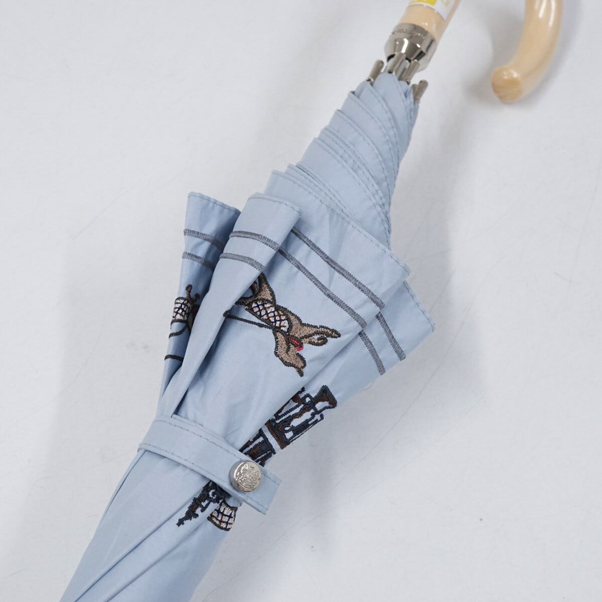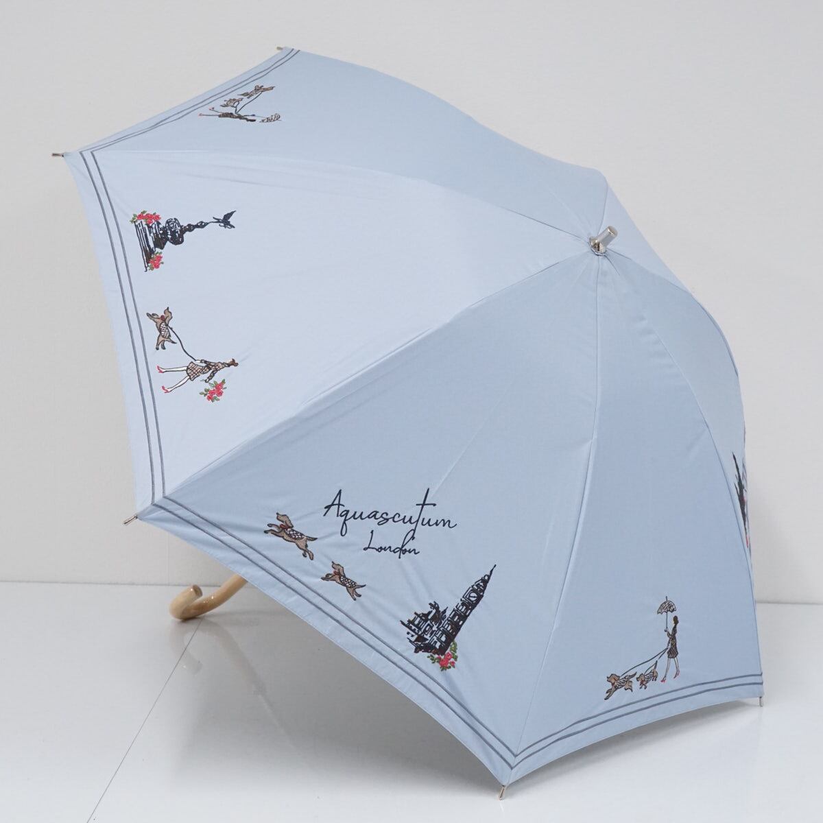 晴雨兼用日傘 Aquascutum アクアスキュータム USED美品 サマーシールドLII ロンドンガールと英国犬 ライトブルー 遮光 UV 刺繍 50cm S2600