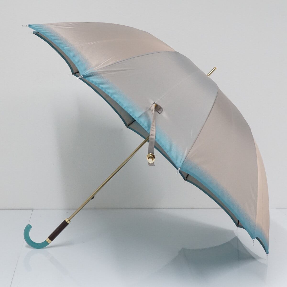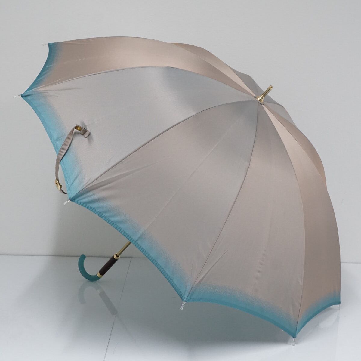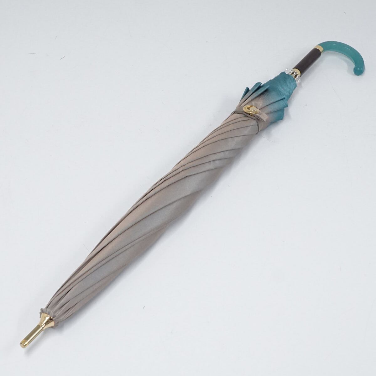 傘 TSUKISOU 月装 つきそう ムーンバット USED美品 天然素材 グリーン系 シャンブレー おしゃれ 高級 日本製 55cm S2612