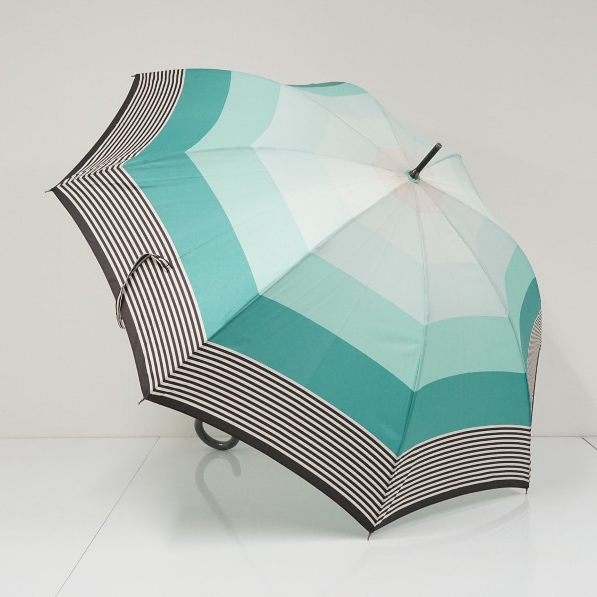 傘 SONIA RYKIEL ソニアリキエル USED美品 グリーン グラデーション ボーダー ブラック 60cm A3690