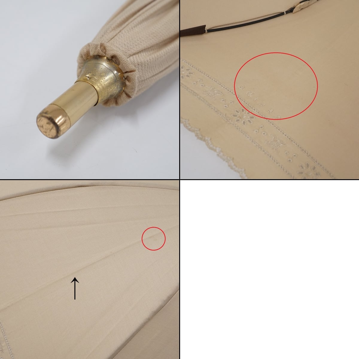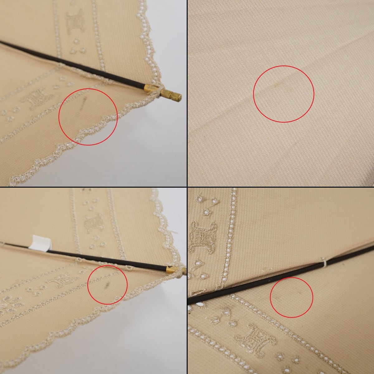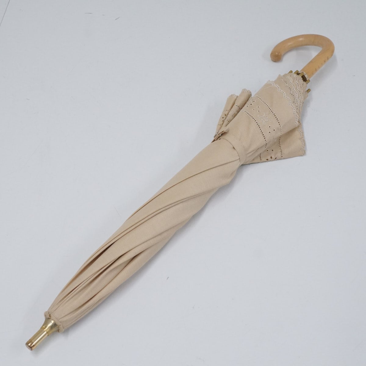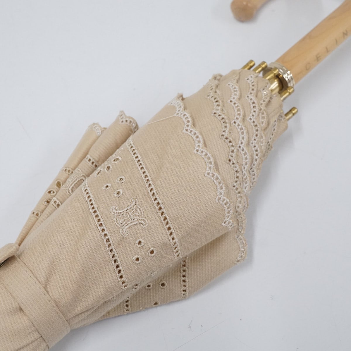 日傘 CELINE セリーヌ USED美品 レディース 長傘 マカダム 刺繍 ロゴ ブランド 手開き UV ベージュ 47cm S2619