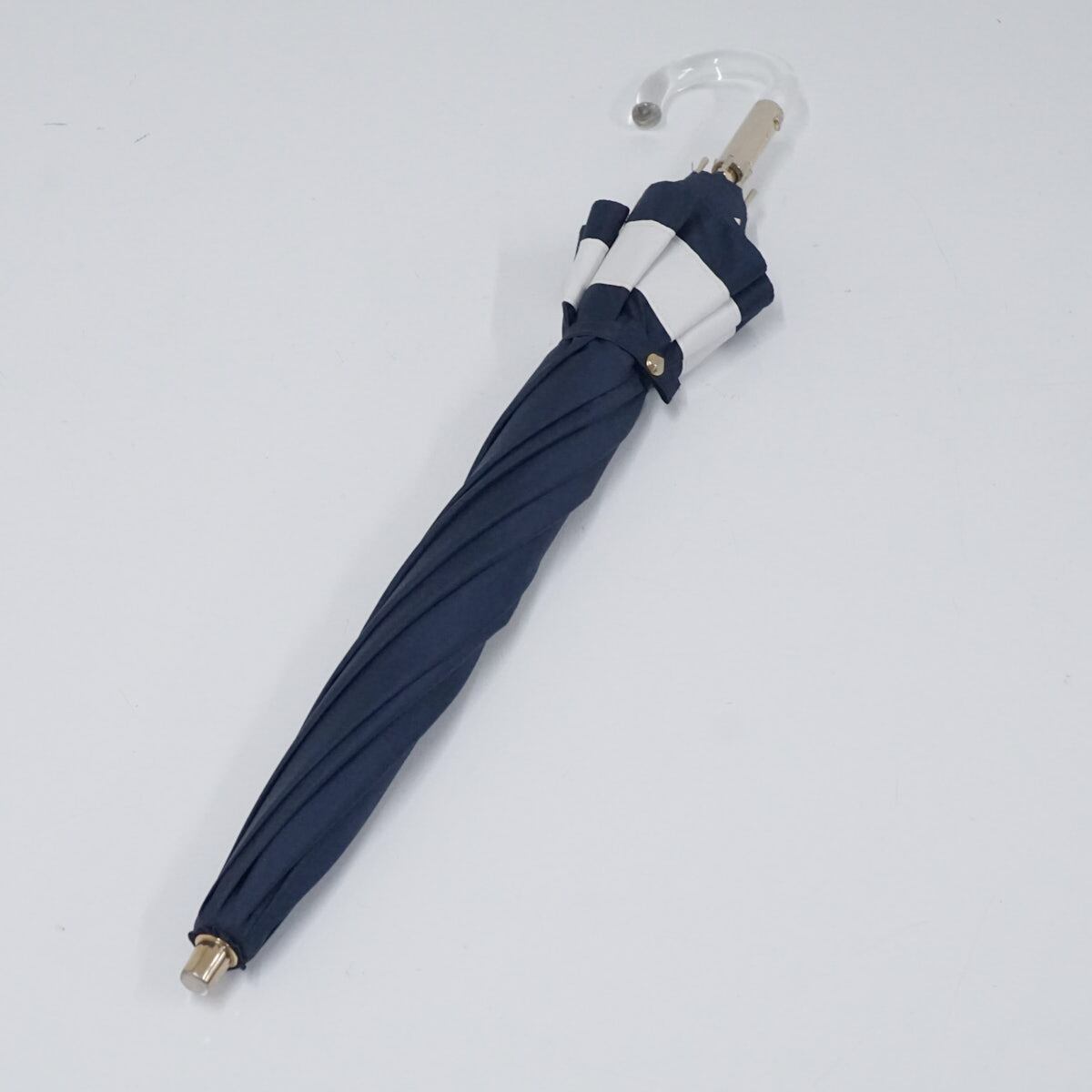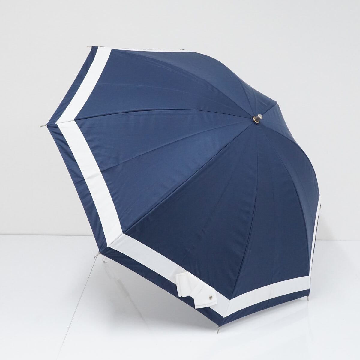 ネイビーxオフのバイカラーデザインが上品な雰囲気の晴雨兼用の日傘です。